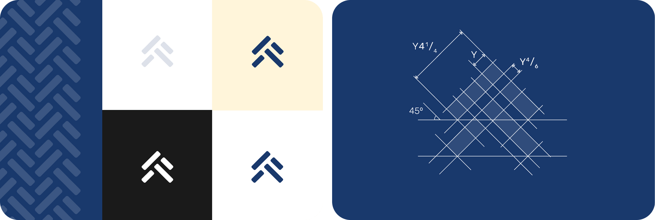Изучили продукт, технологии и рынок. Сделали логотип, вдохновлённый европейским дизайном и производственными особенностями. Фирменный знак — доски, сложенные «ёлочкой», — лёг в основу айдентики.