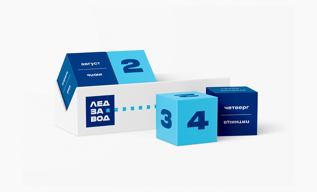 Ну а как лаконично и прекрасно логотип будет вписывается в любой элемент айдентики. Начиная от настольного календаря, заканчивая, притягивающим внимание, световым коробом. У льда есть несколько недостатков, он может растаять и разбиться. Даже это подтолкнуло нас на мысль. Вот если разделить логотип на множество маленьких, квадратных частиц, то, как бы вы не пробовали их сложить, у вас всегда будет получаться идеальный узор, поражающей своей четкостью. Именно этот принцип оказался основополагающим для всей айдентики продукта.