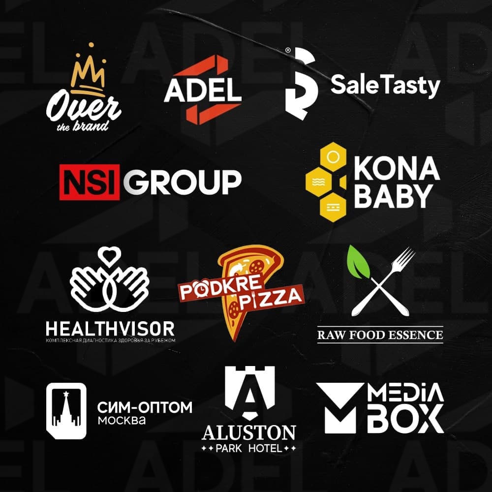Мы разработали логотипы для таких компаний как: Over, MediaBox, Aluston, PodkrePizza, Сим-Оптом, KonaBaby, SaleTasty