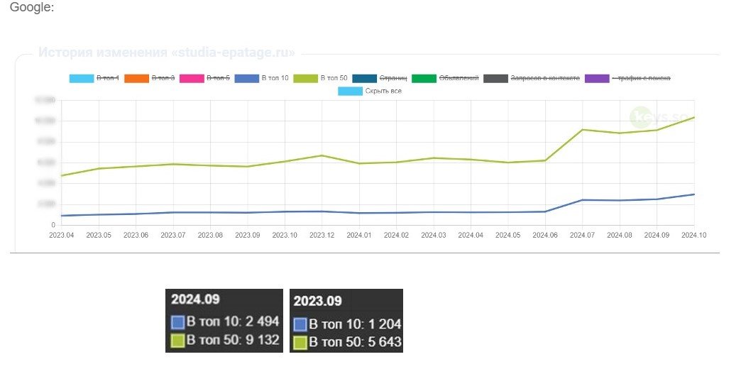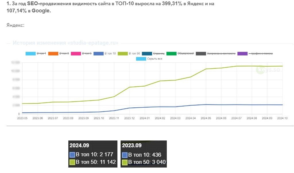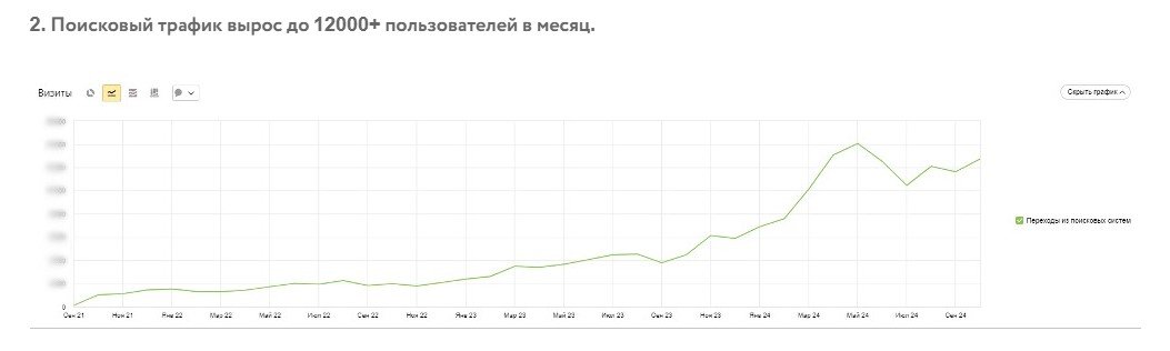 В результате мы достигли ТОП-10 по высококонкурентным запросам и смогли привлечь значительный поисковый трафик, конвертируя его в заказы.