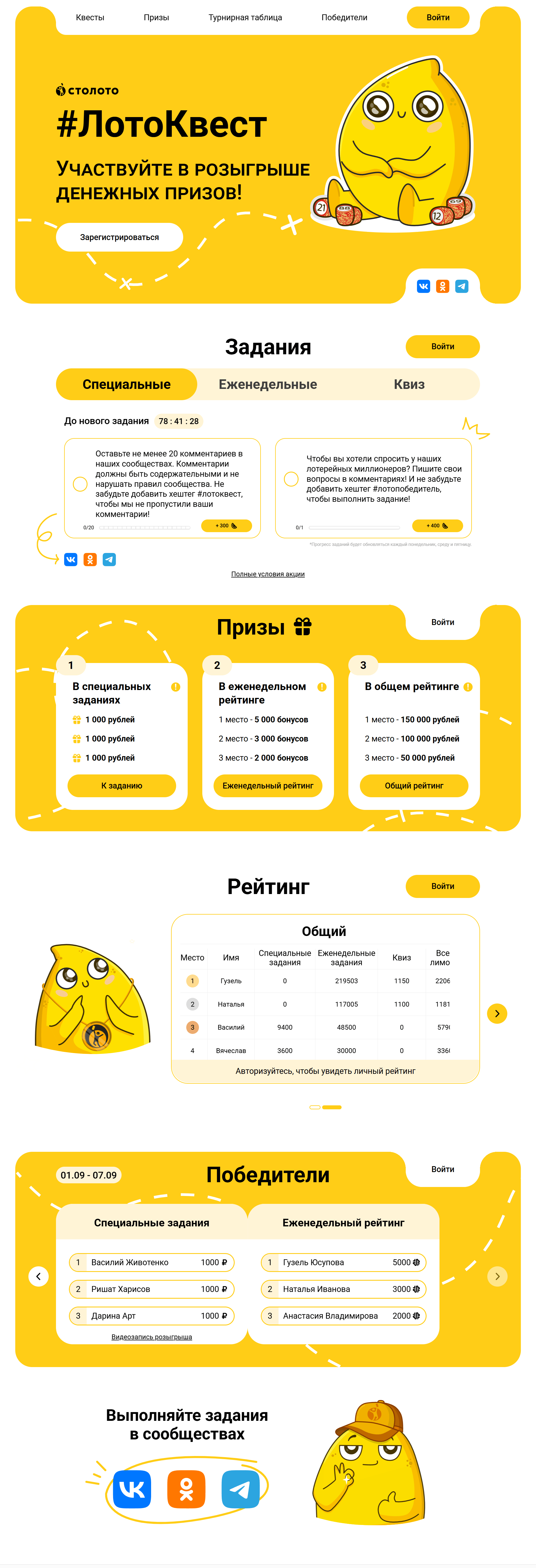 Разработать целевой одностраничный сайт (лендинг), который представляет новую игровую механикy «ЛотоКвест», ярко и понятно объясняет правила участия, мотивирует пользователей зарегистрироваться и принять участие в соревновании.