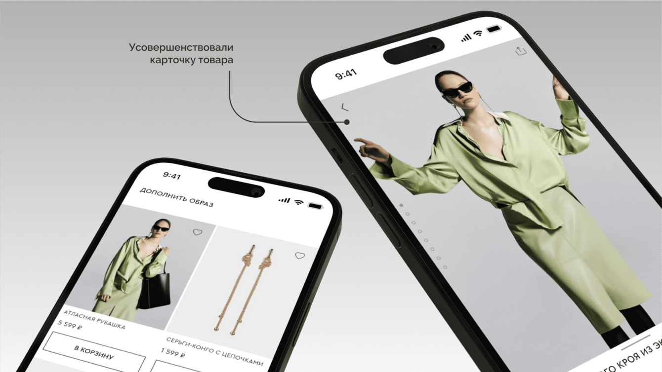 Во время исследования отметили, что основной тренд в fashion-среде в 2022 году — контент и визуал приложения. Фотографы и стилисты изначально выставляют кадр и модель так, чтобы изделие выглядело органично в мобайле, а покупатель мог реалистично оценить, как одежда будет сидеть на нём. Это помогло клиенту создать контент для покупательниц.