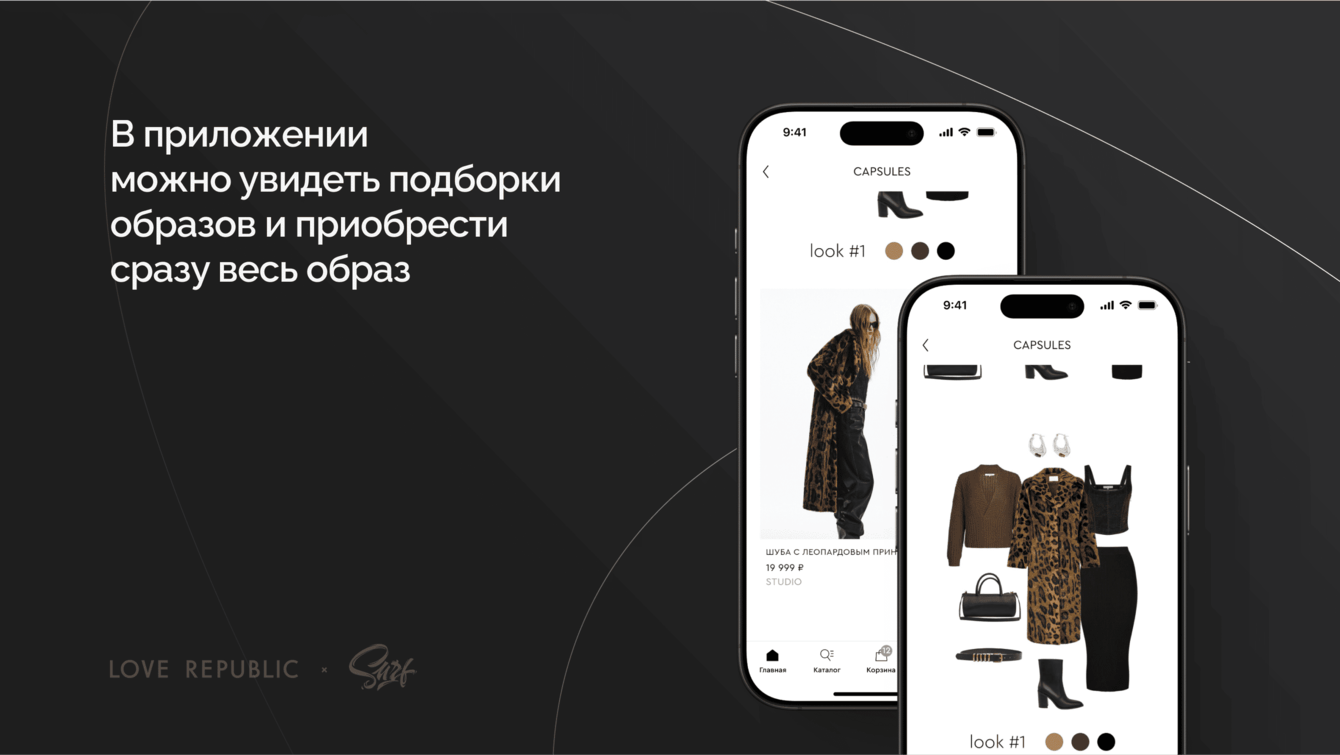 — Подборки в каталоге. В приложении пользователи видят, как товары сочетаются между собой, и могут «собрать» образ для себя. Приложение показывает им луки с конкретным товаром, которые можно сразу «положить» в корзину для покупки за пару минут.