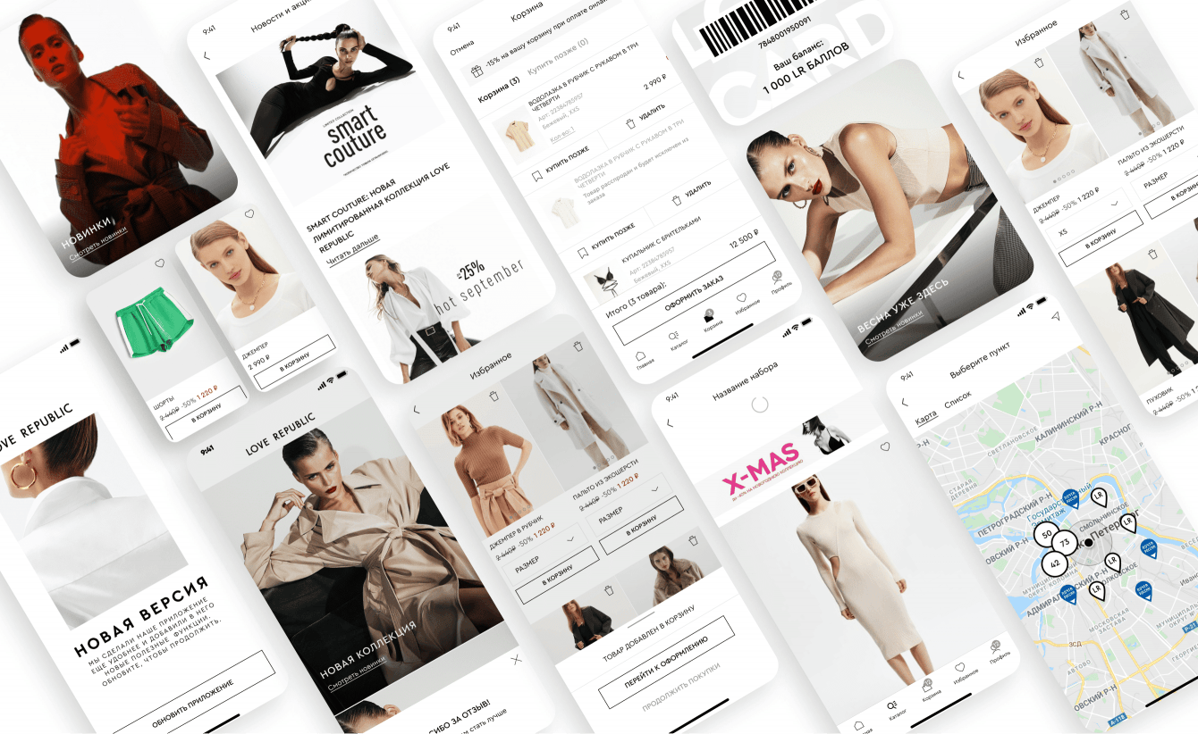 - Сделали редизайн приложения на основе разработанного LOVE REPUBLIC UI kit, чтобы усилить позиции бренда и увеличить продажи.