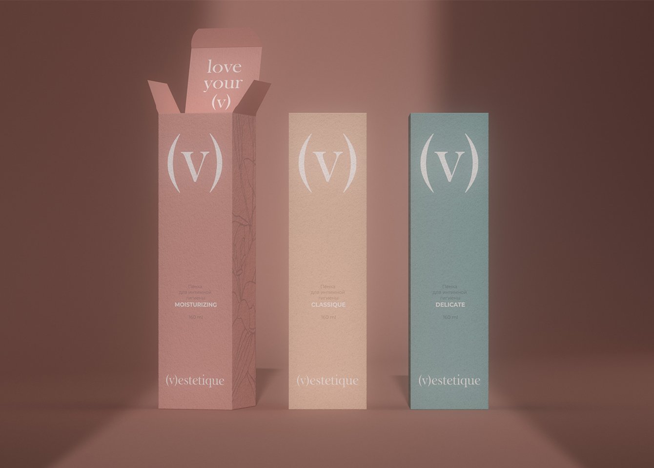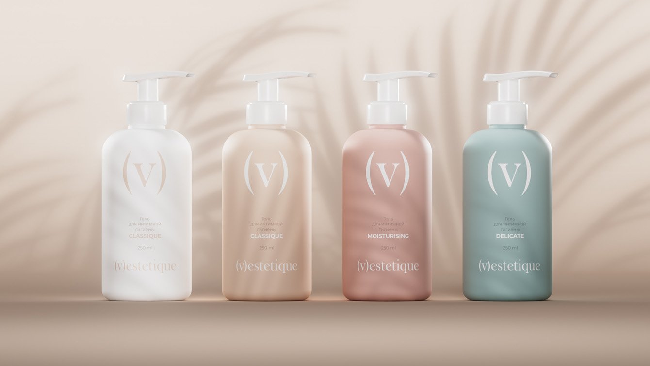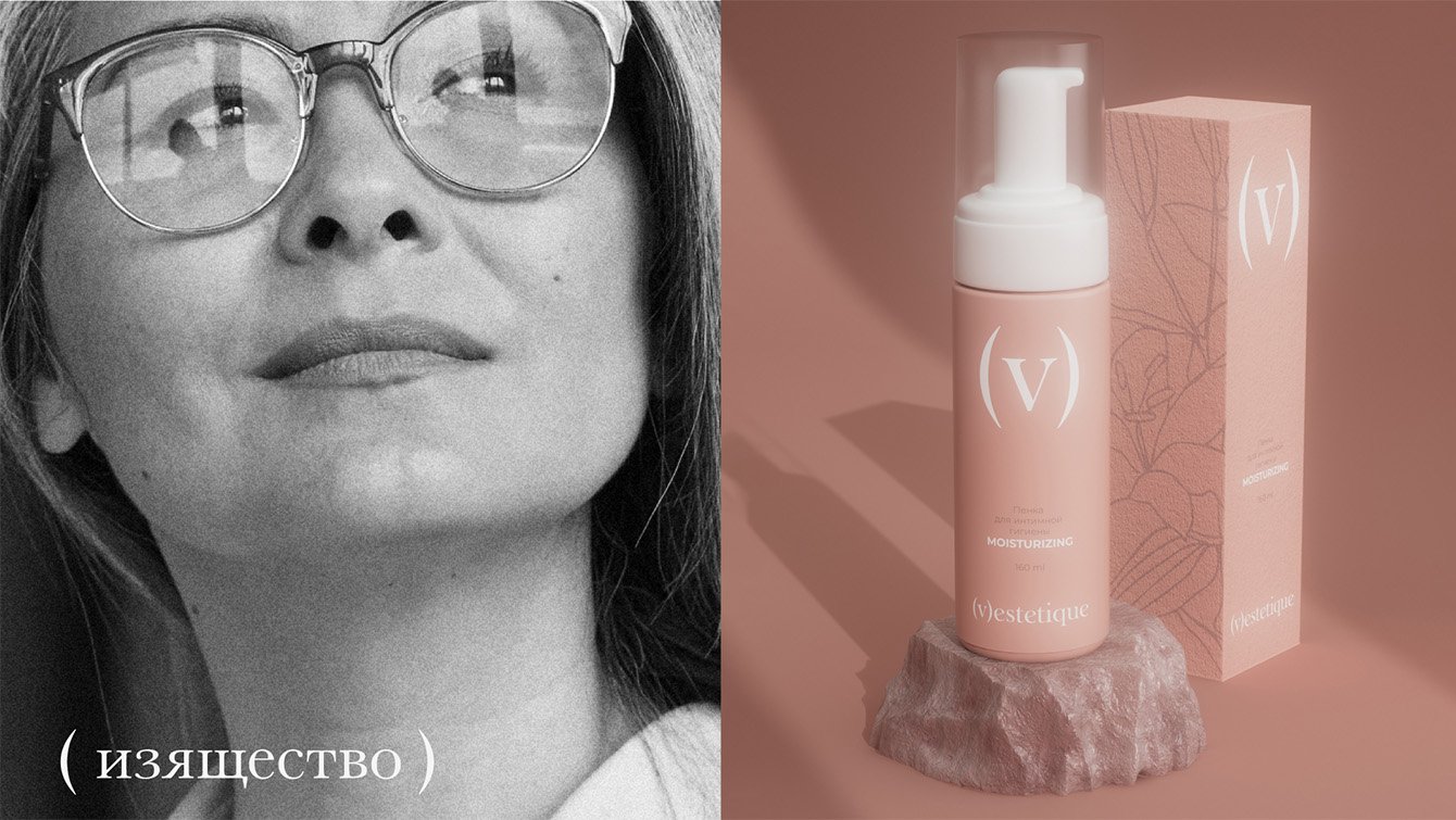 Vestetique — новый бренд косметики для интимной гигиены. В этой категории есть устоявшиеся визуальные коды: дизайн часто выглядит медицинским, что создает эмоциональные барьеры у покупательниц. Перед нами стояла задача сделать так, чтобы флакон с пенкой или гелем для интимной гигиены занял почетное место на бьюти-полке, оказавшись рядом с любимыми банками каждой девушки.