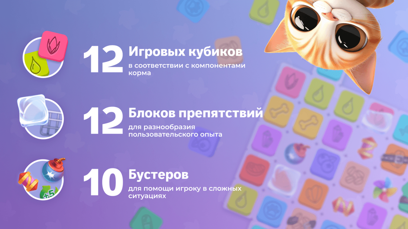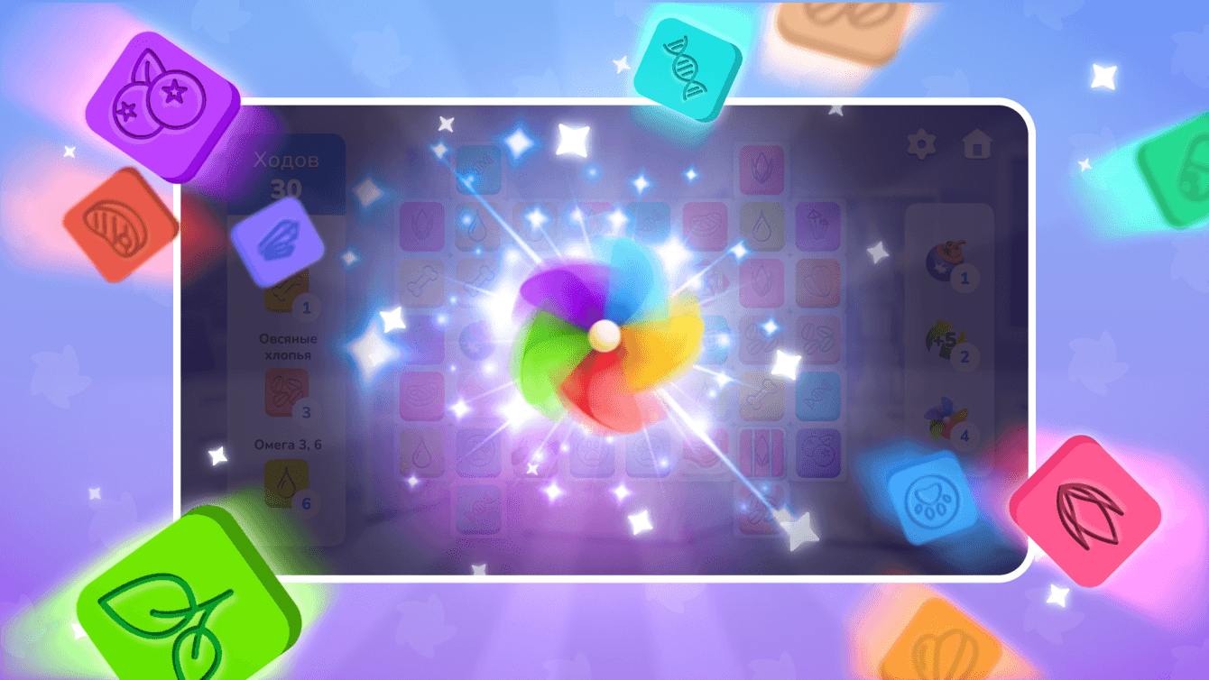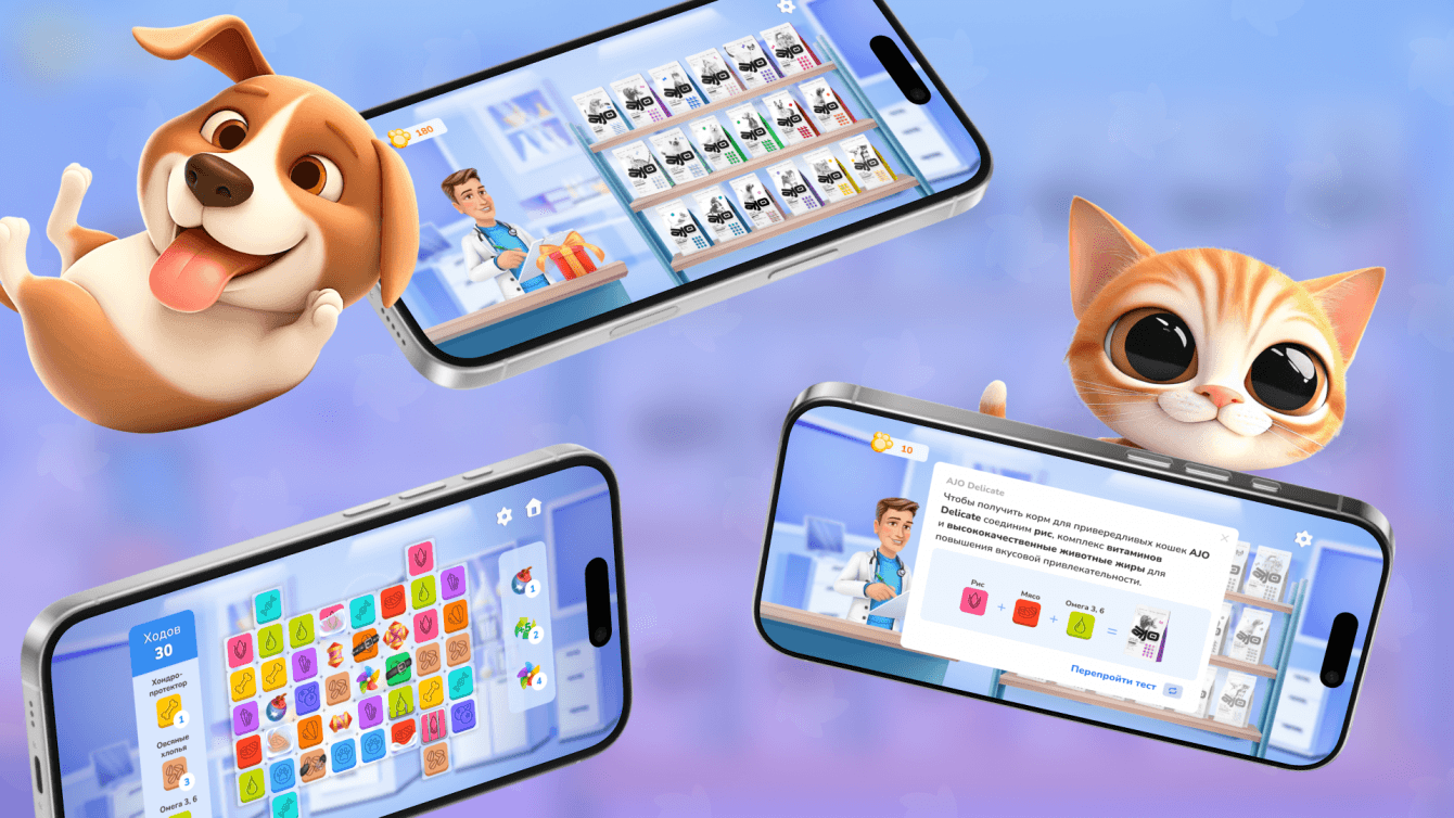 Мы создали обучающее приложение «Лаборатория AJO» на базе популярной механики «Три в ряд». Играя, продавцы изучают 18 видов корма и легко запоминают их состав и рецептуру.
