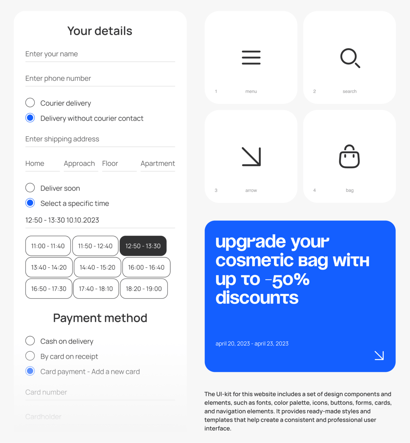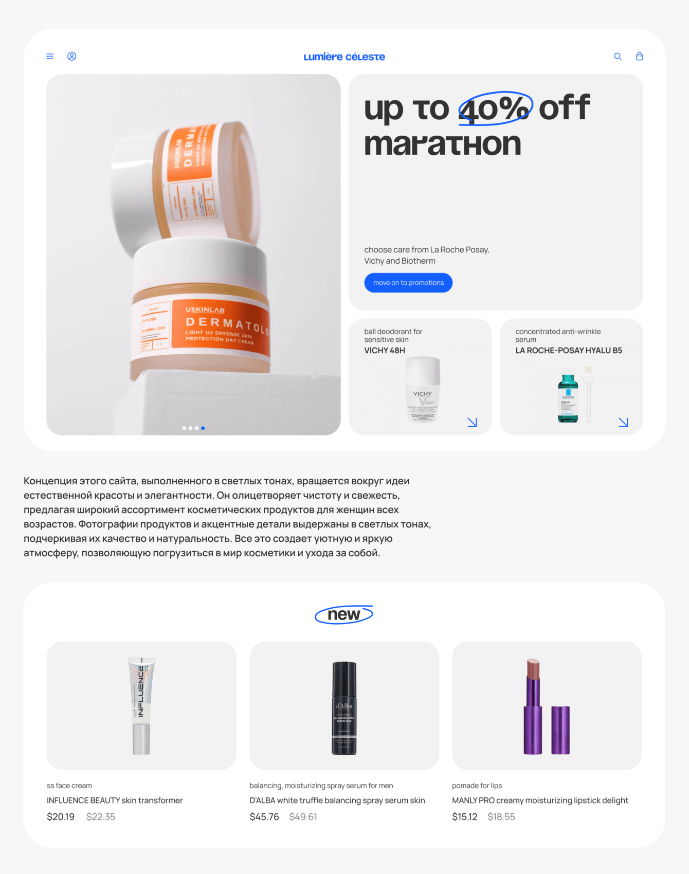 Результатом нашей работы стало успешное создание веб-сайта для онлайн-магазина косметики, который полностью соответствует ожиданиям заказчика. Благодаря эстетичному и удобному интерфейсу, а также расширенной функциональности, конверсия на страницах оформления заказа выросла благодаря улучшенному процессу покупки.