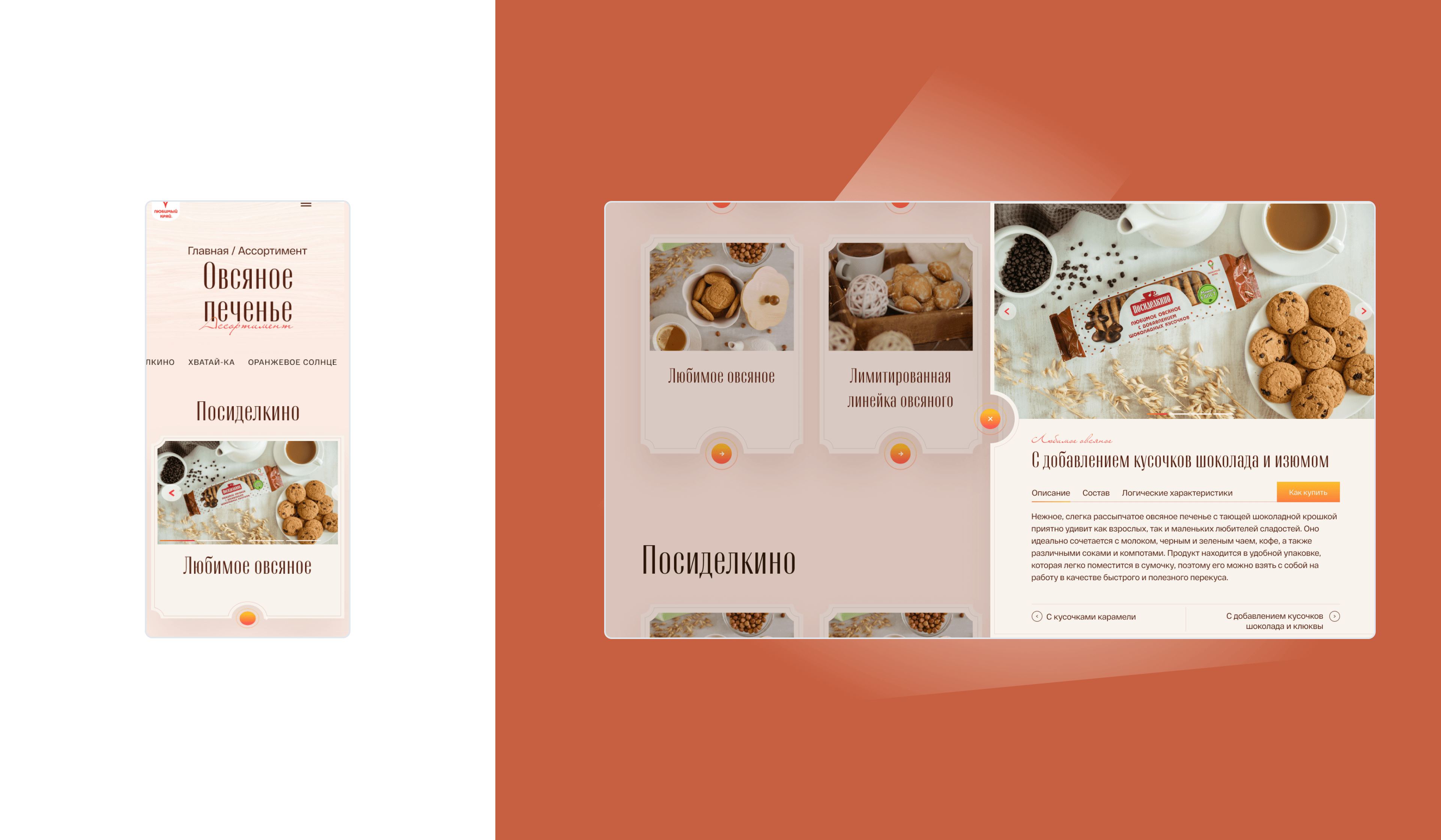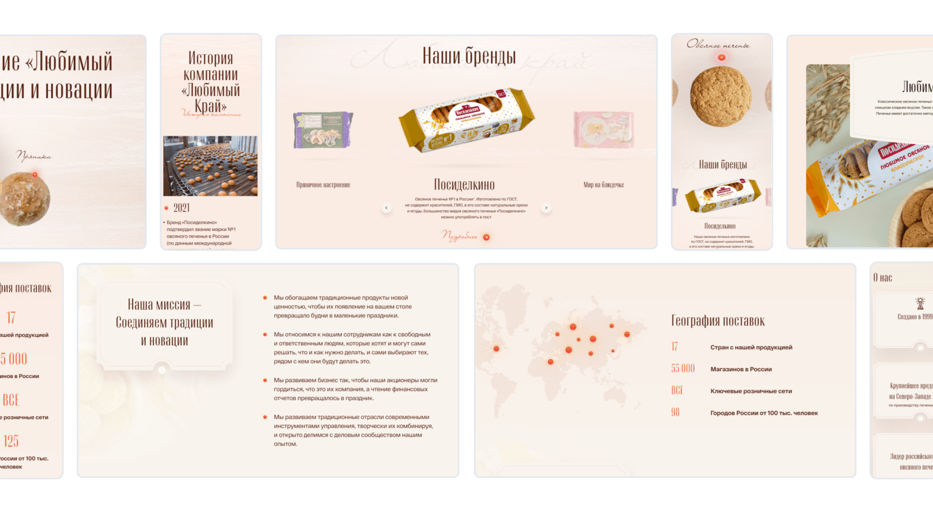 Создать новый корпоративный сайт для кондитерской компании, которая выпускает продукцию под брендами «Посиделкино» и другими. Обеспечить современную подачу и удобство для пользователей.