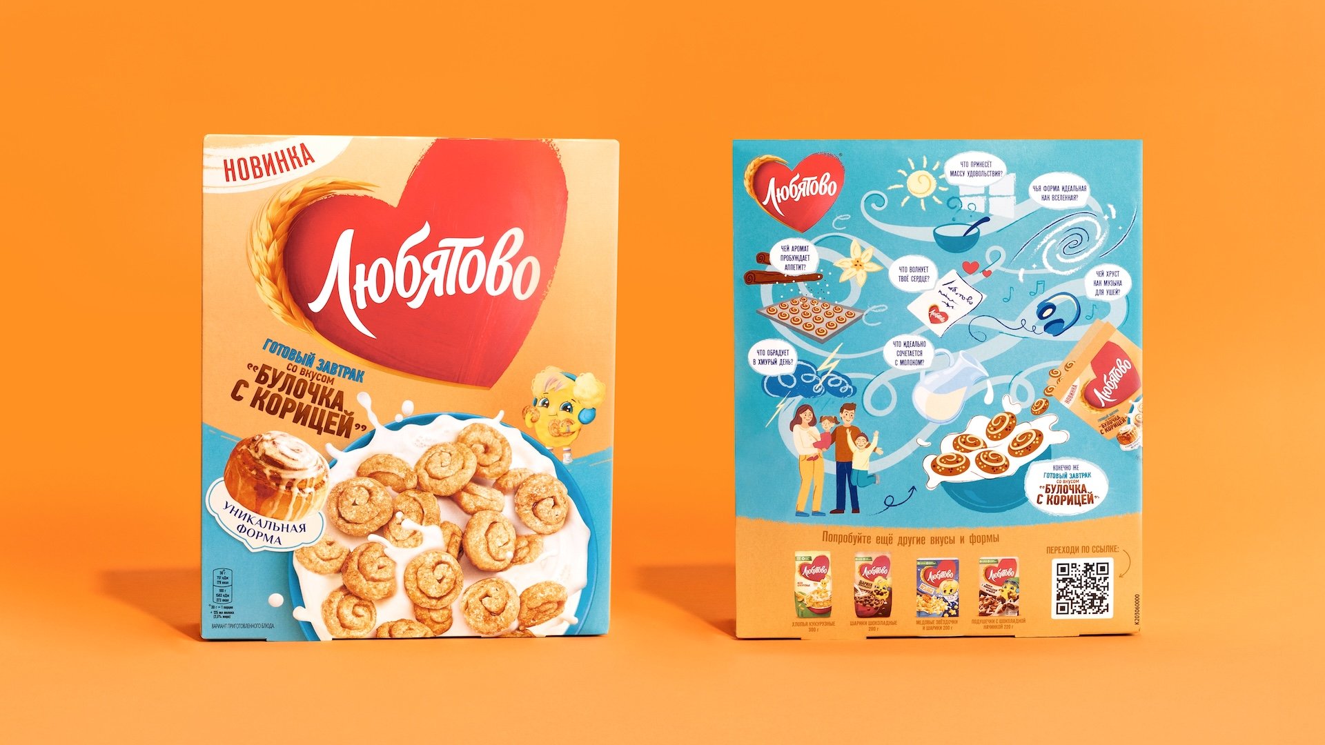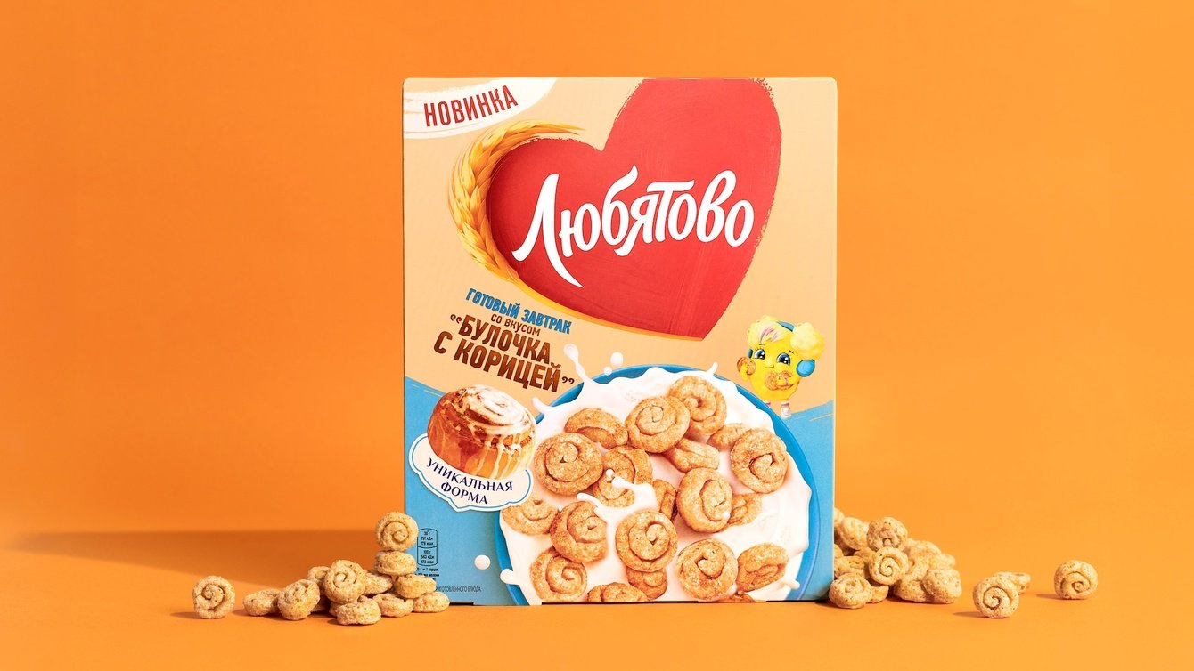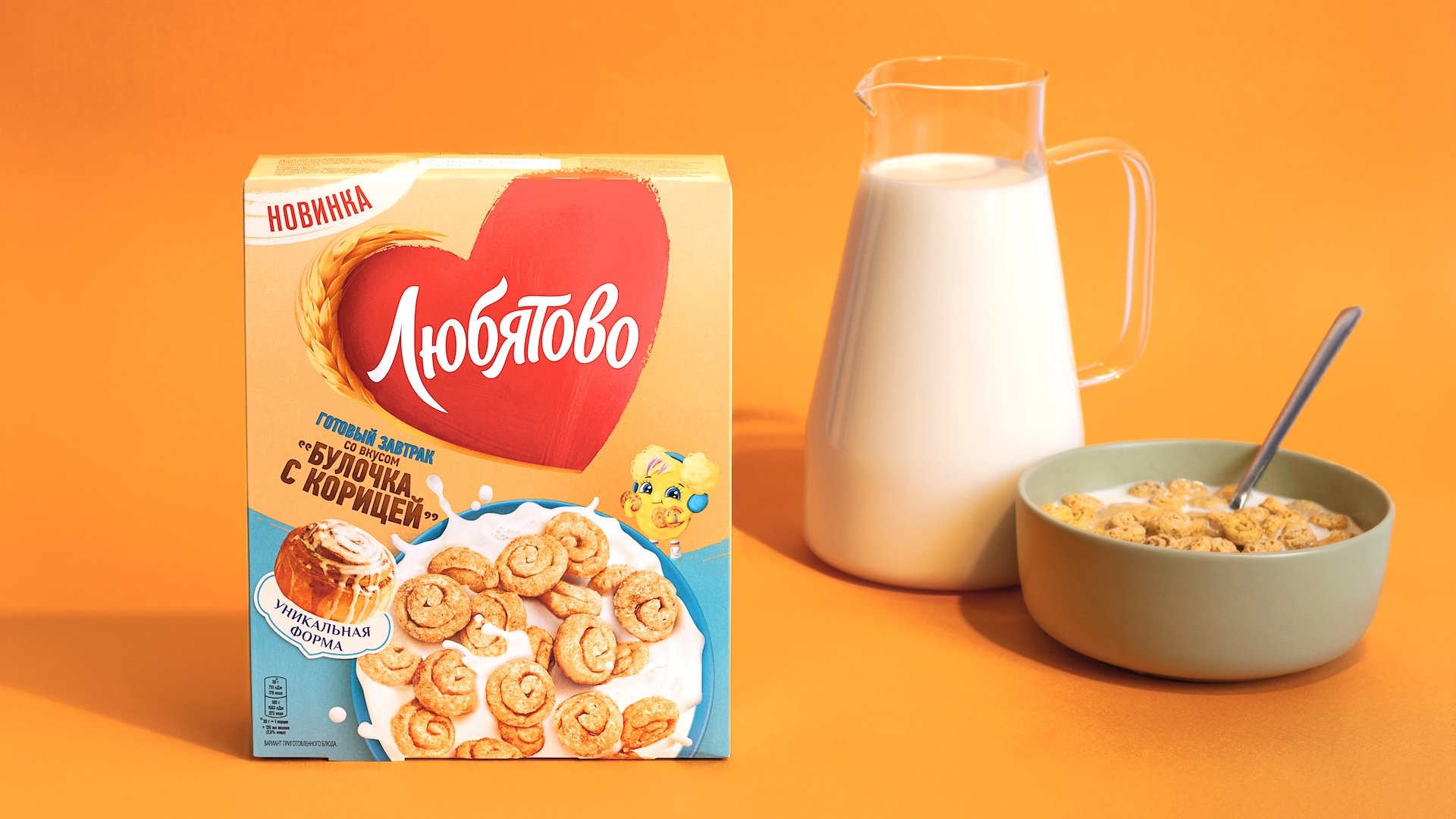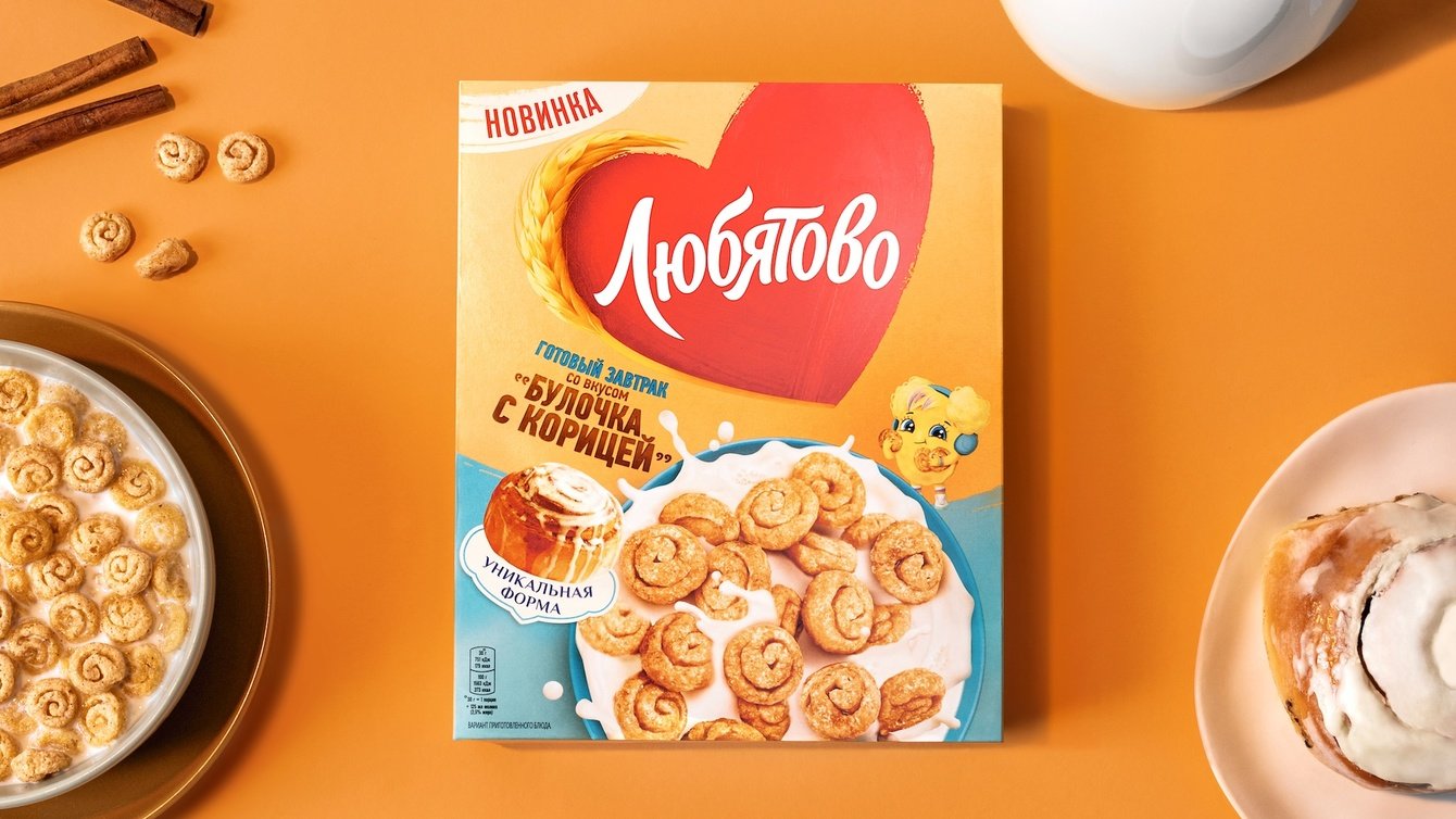 DS1 branding сопровождает бренд «Любятово», и в этот раз задачей агентства стала разработка имиджа нового , уникального для российского рынка вкуса готовых завтраков — «Булочка с корицей».