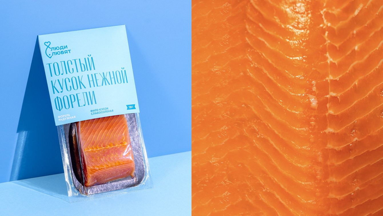 Новый бренд получил название «Люди любят рыбу» — легкое и дружелюбное признание. С него начинается и остальная коммуникация, где упаковка сама рассказывает про вкус и происхождение, а главным героем становится продукт.