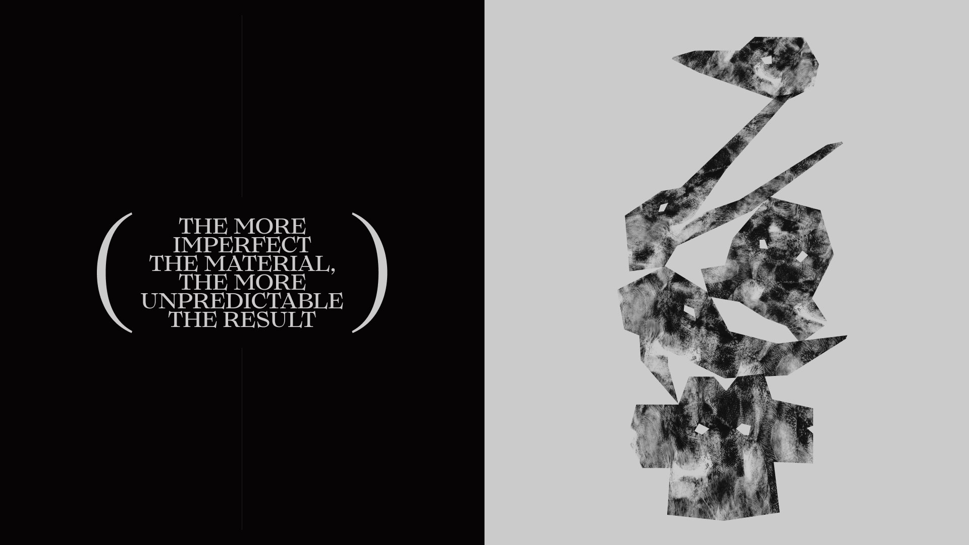 В основе философии — идея несовершенства как ценности. Каждый скол, трещина или обожжённый след — это не дефект, а носитель истории. Материал хранит в себе следы времени, а работа художника лишь подчёркивает и усиливает их, не стремясь стереть или скрыть.