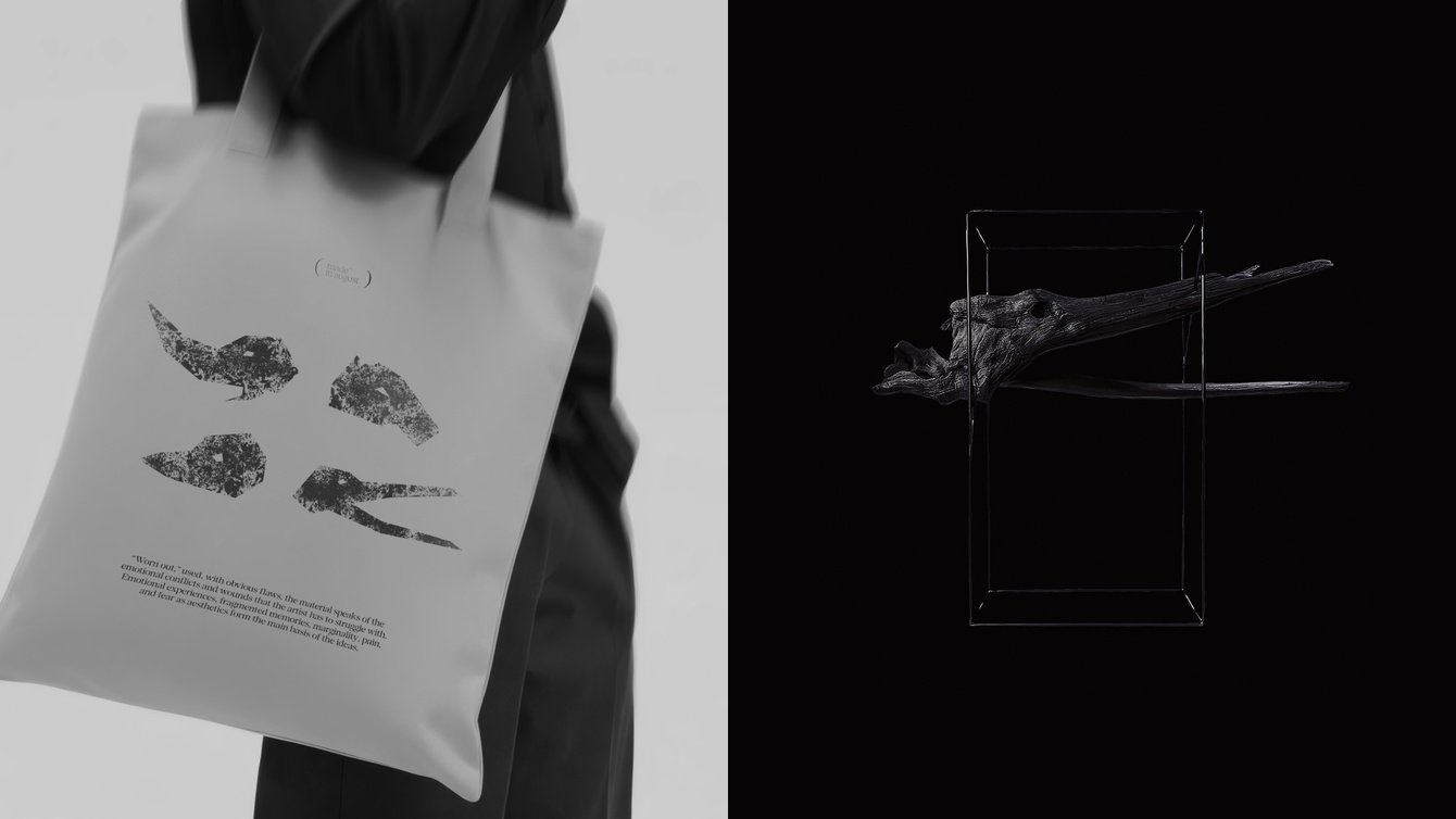 Айдентика строится на тех же принципах. Скобки — рамка, в которой всегда появляется уникальный фрагмент, найденный в материале. Объект внутри меняется, но система остаётся целостной.