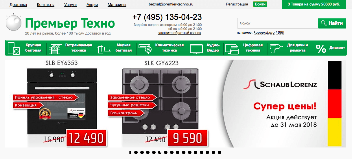 Сеть магазинов бытовой техники и электроники «Премьер Техно» и крупнейший в рунете, лидер на известных торговых площадках интернет-магазин.