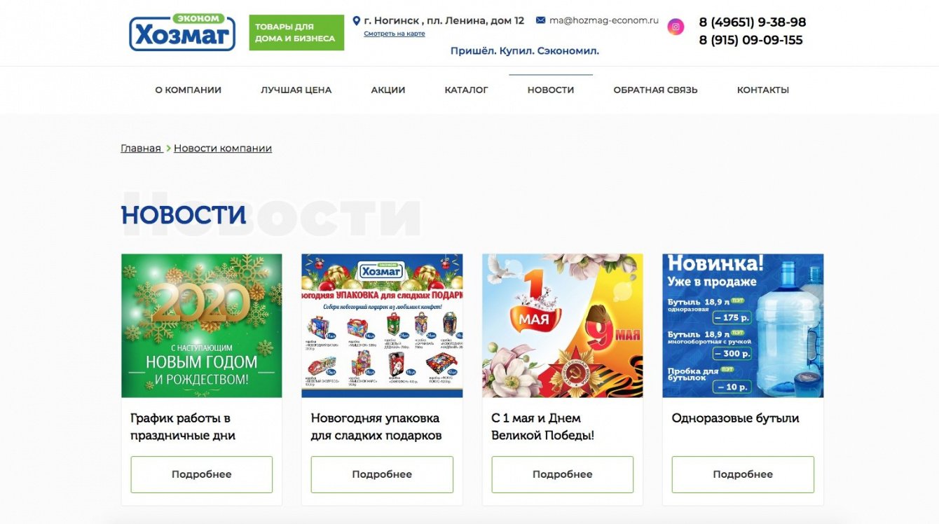 Разработан корпоративный сайт для офлайн магазина товаров для дома.