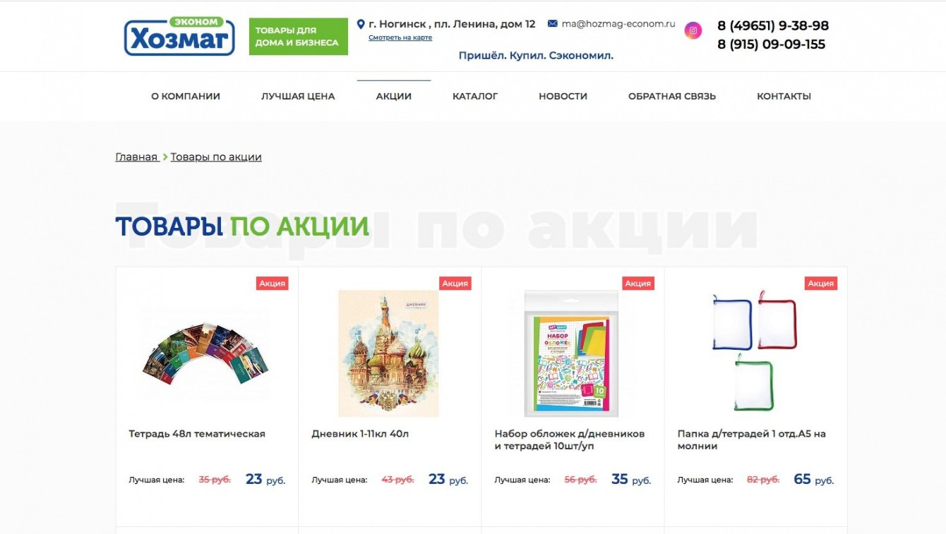 Сделать представительство офлайн магазина в интернете, показать основные акции.