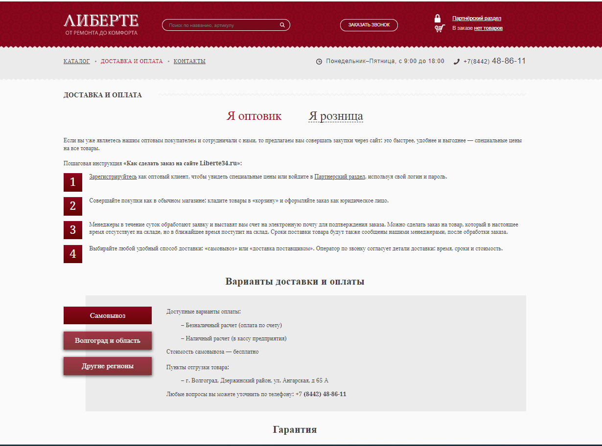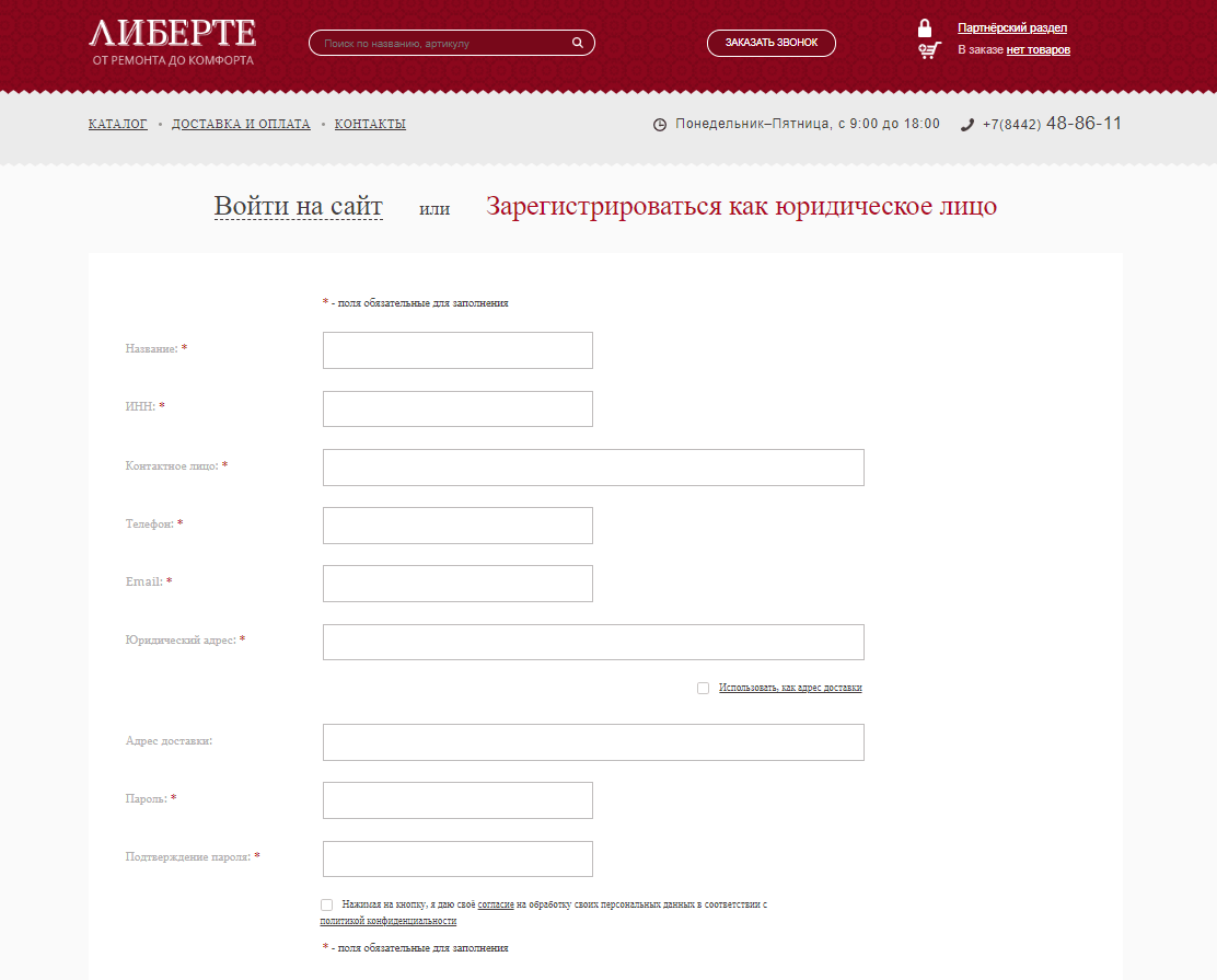 Перед нами стояла задача разработать интернет-магазин бренда Либерте на платформе Битрикс. Интернет-магазин должен был быть интегрирован с системой 1С заказчика, отображать максимальное количество информации, полезной для покупателя. Иметь личный кабинет для оптовых покупателей, с корзиной покупок, выбором оплаты и доставки.