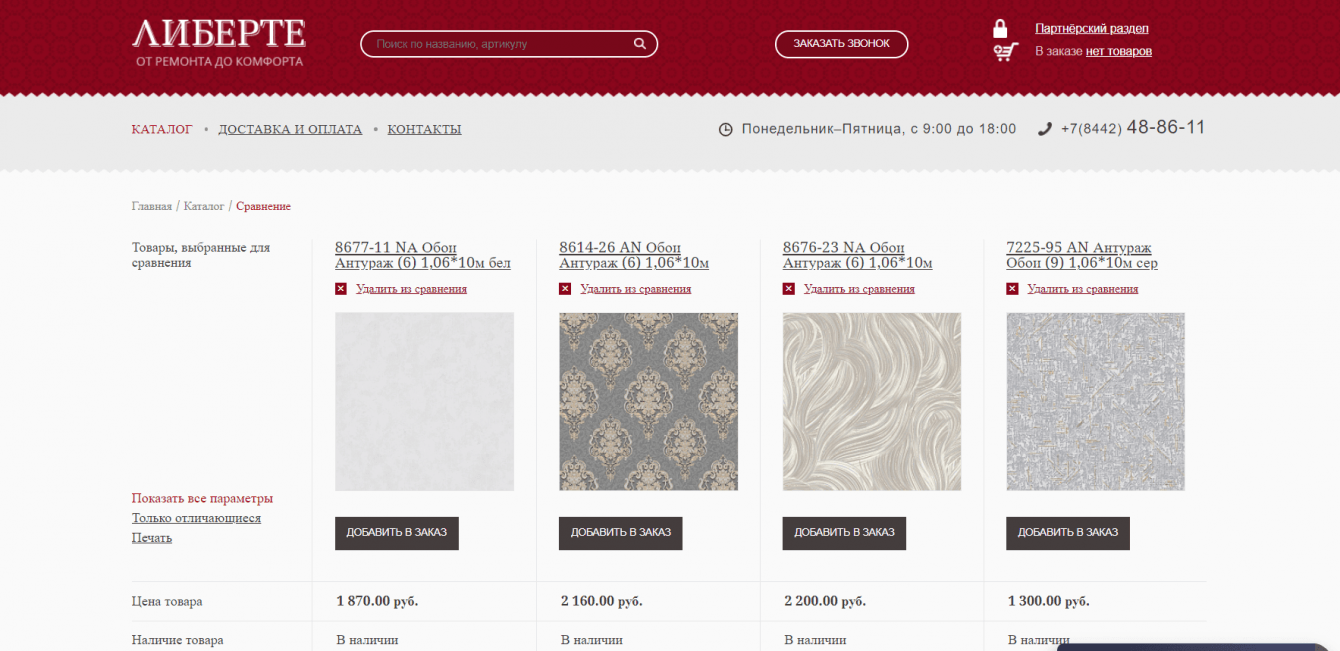 Для удобства пользователей был реализован функционал сравнения товаров. Можно собрать несколько товаров в одном месте, сравнить и выбрать наиболее подходящий.