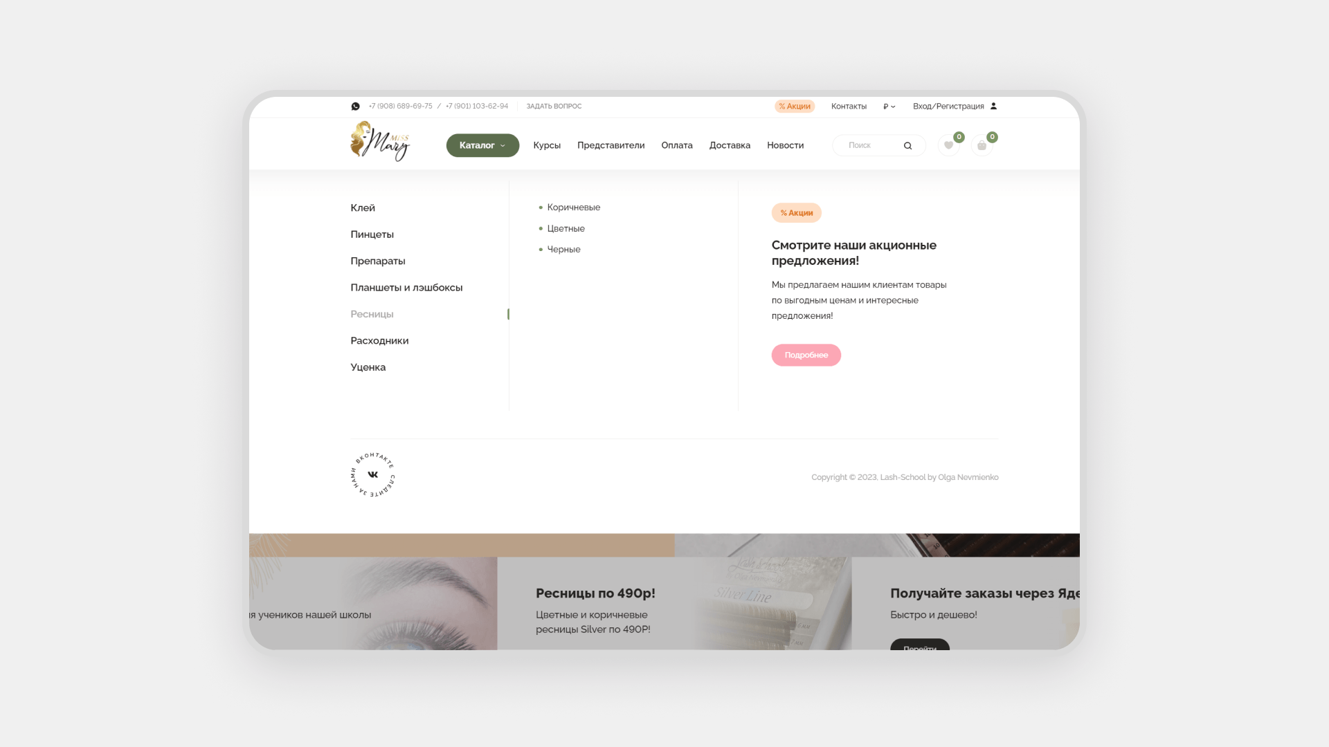 Специализированный раздел "курсы наращивания ресниц" был разработан с учетом потребностей целевой аудитории, предоставляя подробную информацию о курсах и возможностях обучения. Это привлекло новых учеников и расширило клиентскую базу.