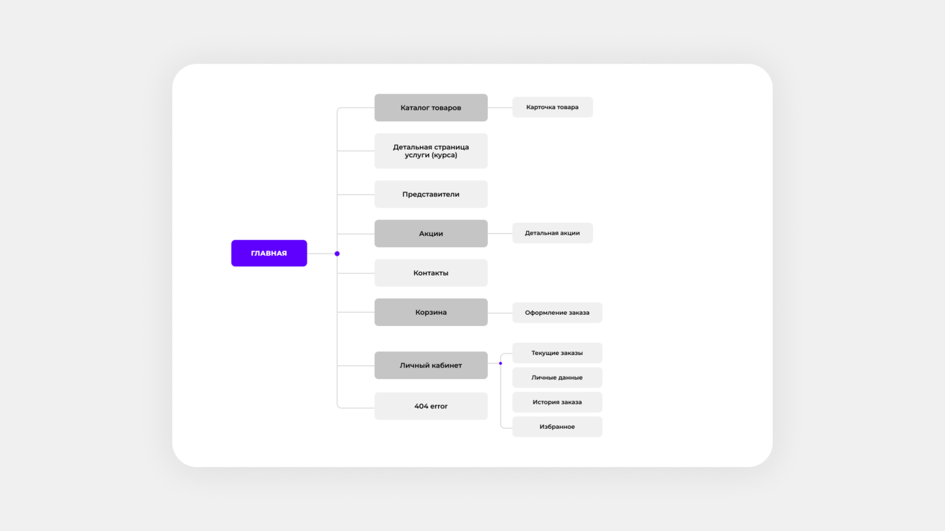 Мы отрисовали разнообразные страницы, включая главную, каталог товаров, детальные страницы товара и услуги, раздел акций и новостей, корзину, личный кабинет и другие.