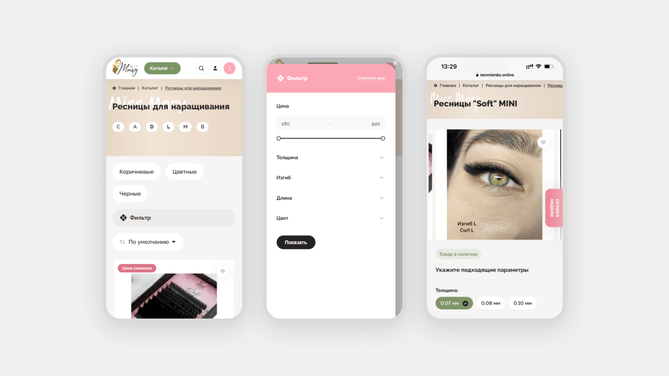 Nevmienko Online — это специализированный интернет-магазин, предлагающий широкий ассортимент продукции для мастеров по наращиванию ресниц. В каталоге представлены высококачественные материалы и инструменты для профессионалов в сфере красоты, включая ресницы, клеи, аксессуары и расходные материалы. Магазин Nevmienko Online ориентирован на мастеров, ищущих надежные и проверенные товары для создания идеальных образов. Компания стремится обеспечивать своих клиентов всем необходимым для успешной работы, предлагая продукцию ведущих брендов и быструю доставку по всей России.