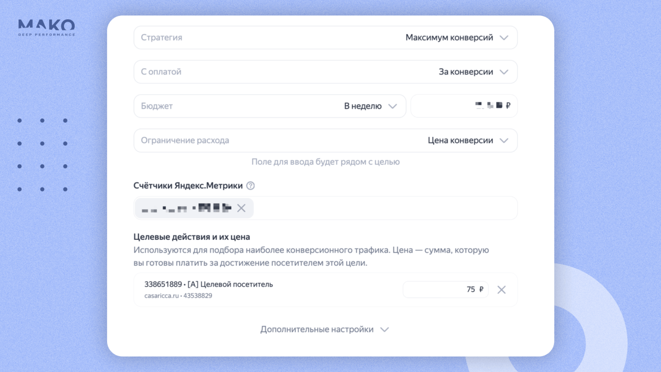 Большой трафик можно получить только из массы холодной ЦА. Поэтому задействовали РСЯ. Раньше этот инструмент дал бы нам только слив бюджета. Но теперь, после доработки сайта, мы дали волю алгоритмам, отпустив их в свободное плавание.