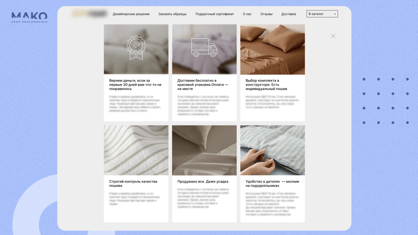 Проанализировали потребности, боли и возражения покупателей элитного постельного белья. В итоге получился довольно увесистый список УТП: