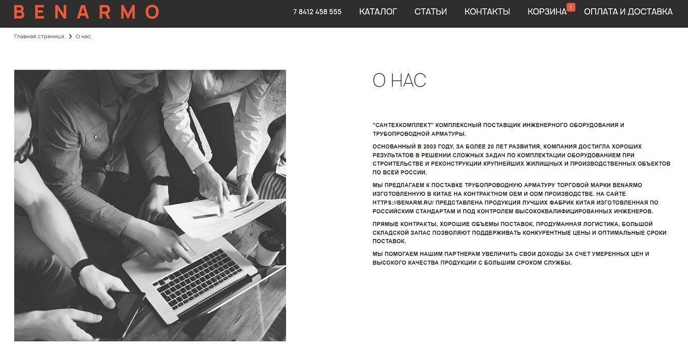 Задача: Разработать и запустить сайт для продажи трубопроводной арматуры. Сайт должен быть удобным и интуитивно понятным для пользователей, и сделать процесс приобретения и доставки быстрым и удобным.