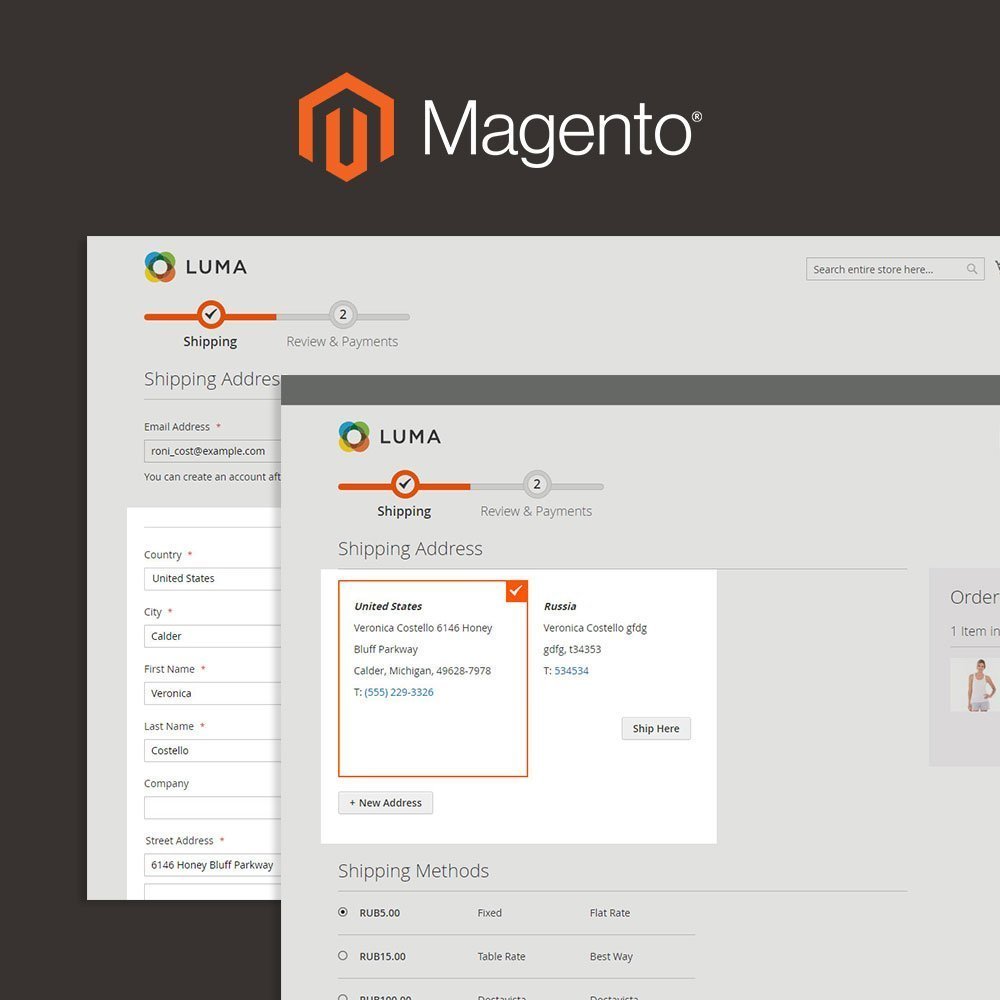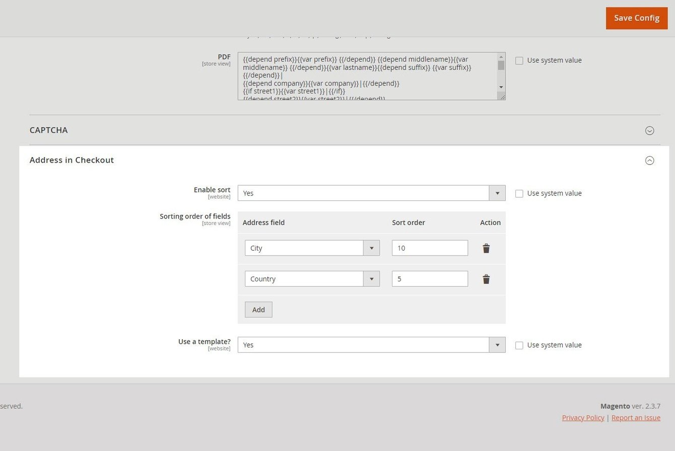 Модуль дополняет вывод шаблона адреса в корзину Magento 2, также добавляет возможность сортировать поля формы в корзине Magento 2.