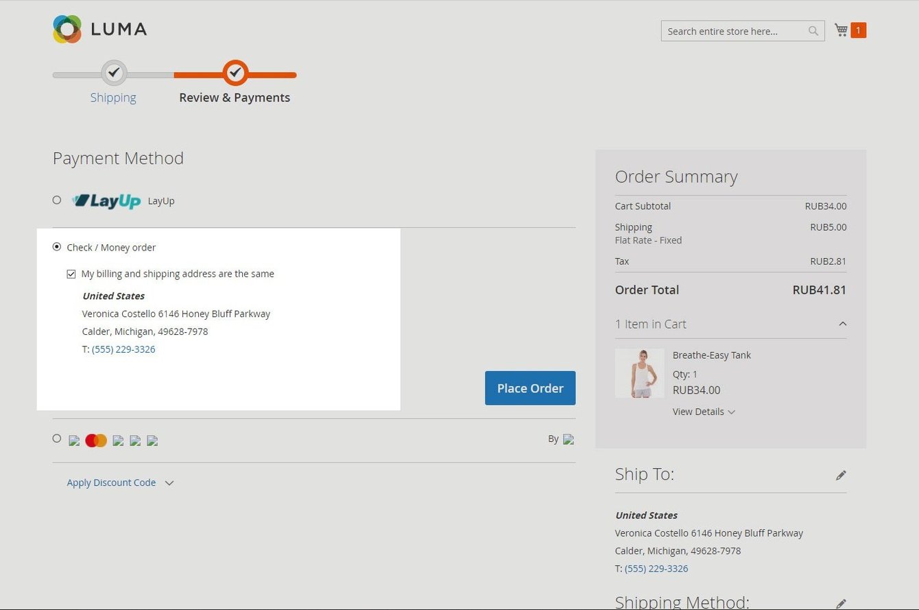 Возможность настроить html шаблон адреса на странице оформления заказа.