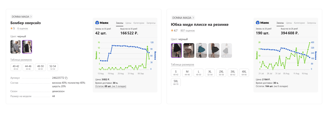 Также мы проводили кампании с блогерами, которые делают обзоры одежды с маркетплейсов с целью поднять заказы у новых позиций в ассортименте.