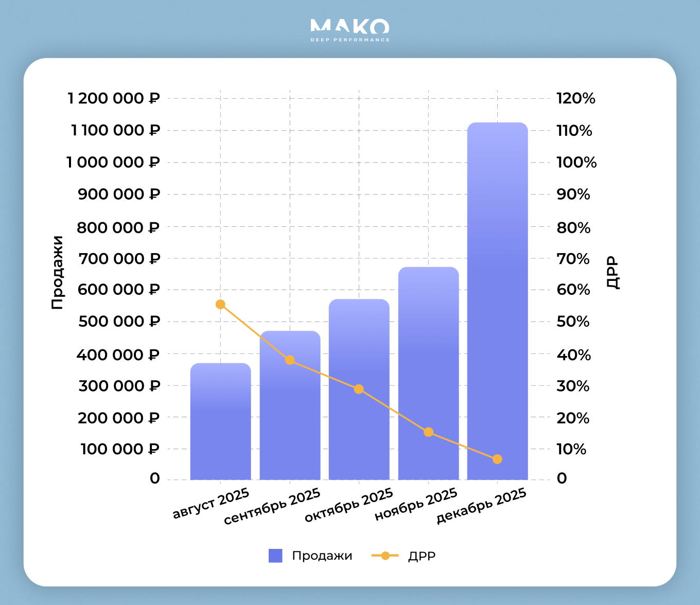 Всего за 5 месяцев продажи выросли в 3 раза, а доля рекламных расходов снизилась до рекордных 7%.