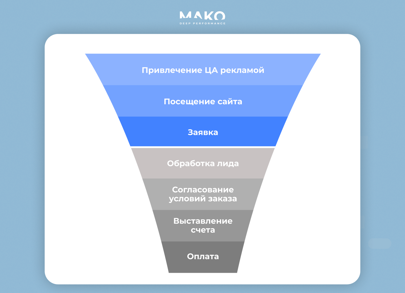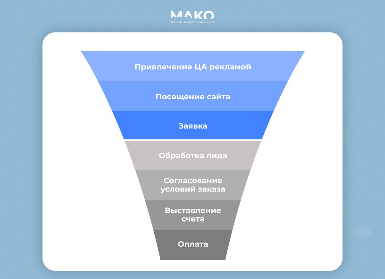 Привет! Мы МАКО — агентство контекстной рекламы и продвижения на маркетплейсах с оплатой за результат. Продолжаем тему воронки продаж. В новом кейсе покажем, как оцифровать ее нижние уровни, которые клиент проходит после отправления заявки в отдел продаж. И расскажем, как эти данные помогли дистрибьютору теплого пола в 3 раза повысить продажи и в 8 раз снизить долю рекламных расходов.