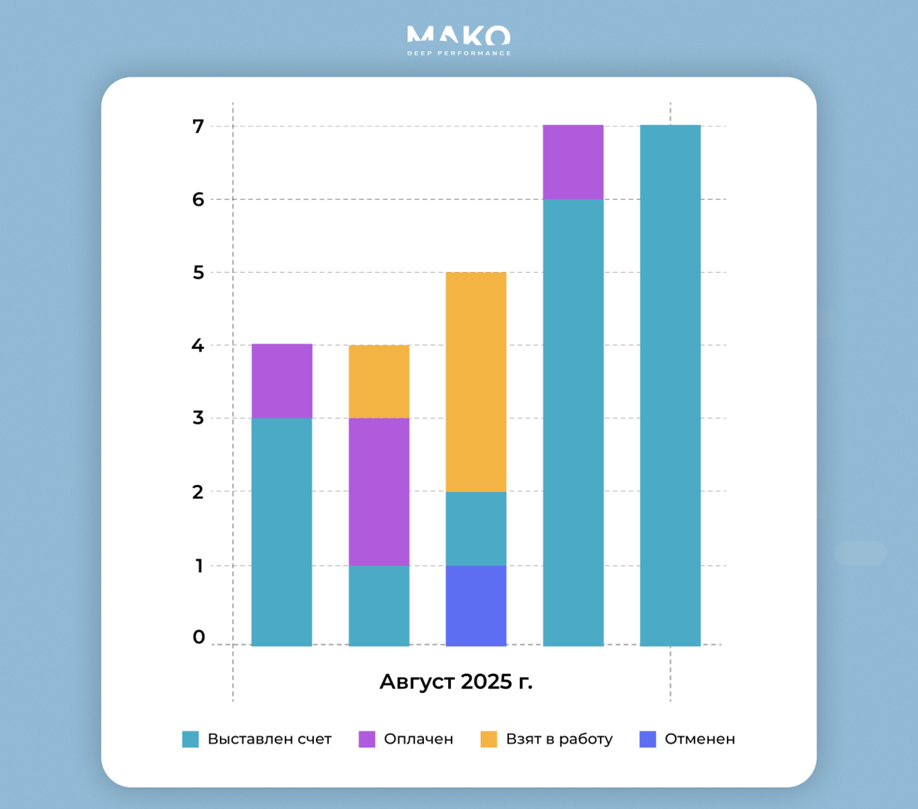 Примерно так статусы сделок отображаются на дашборде