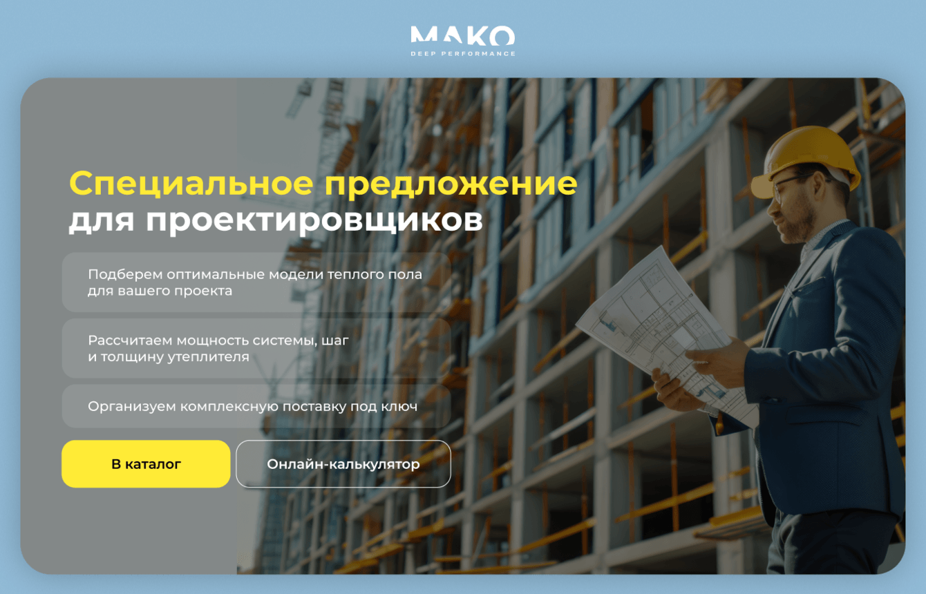 Сначала клиент не последовал нашим рекомендациям, но после анализа результатов появился дополнительный аргумент в пользу доработок. Обнаружилось, что часто на почту приходят заявки от проектировщиков, которым нужно подобрать теплый пол под готовый проект. А на сайте для этой аудитории ничего не было. Мы предложили создать для нее отдельную посадочную страницу.