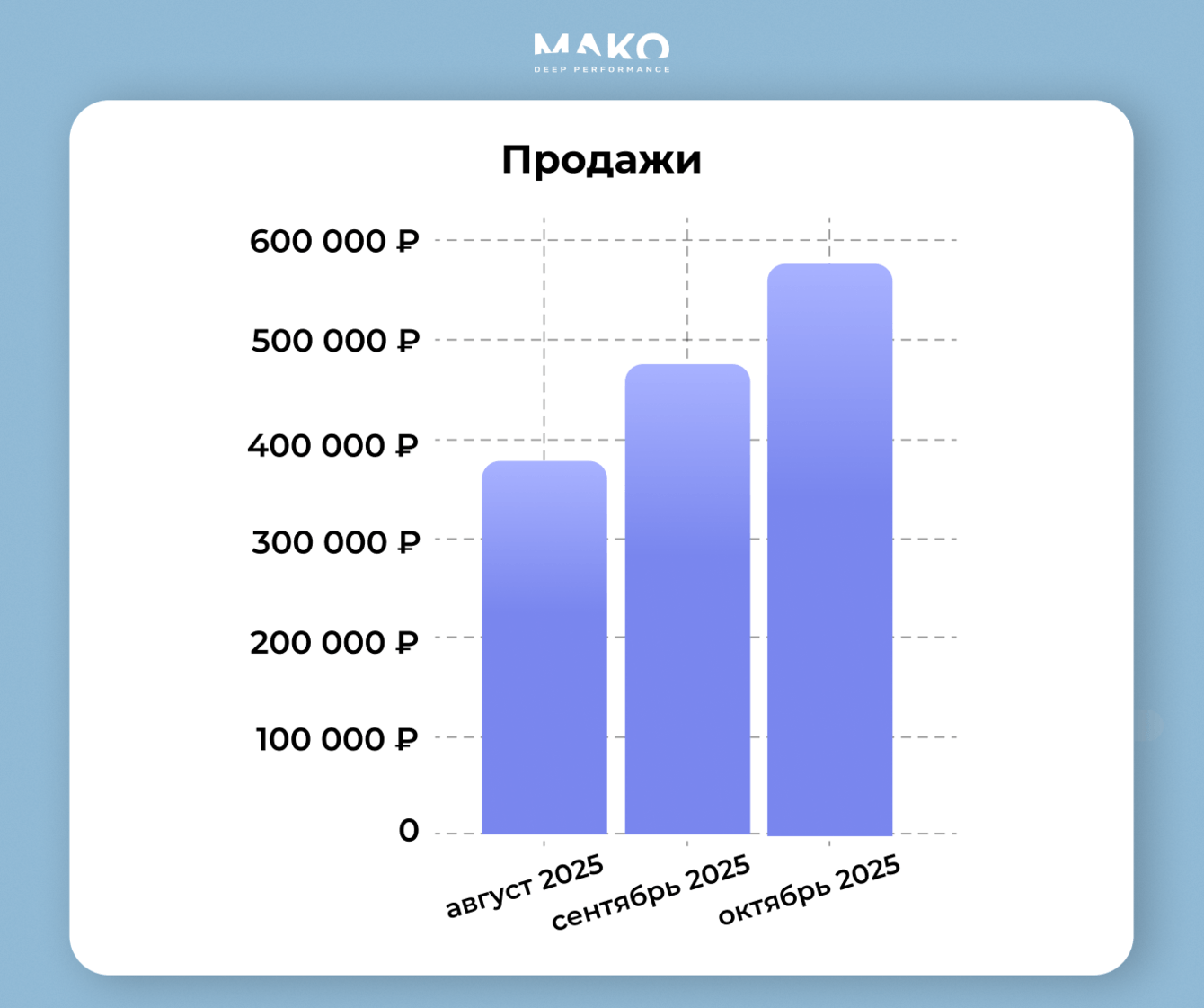 Продажи выросли на 50%.