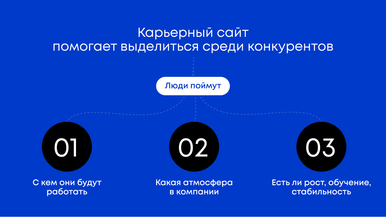 ✔️ Создать маркетинговый инструмент, чтобы привлекать кандидатов и вести их к отклику. Сайт должен работать как витрина бренда работодателя: заинтересовывать людей и повышать конверсию из просмотра в отклик и из собеседования в оффер.