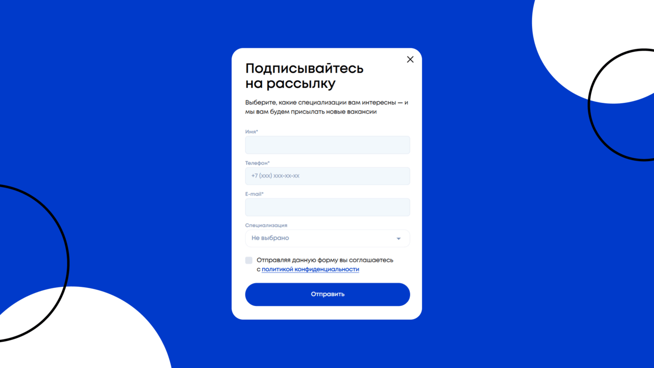 Если подходящей позиции пока нет — можно оставить почту. Когда появится релевантное предложение, система пришлет соискателю уведомление. Так компания не потеряет заинтересованных кандидатов.