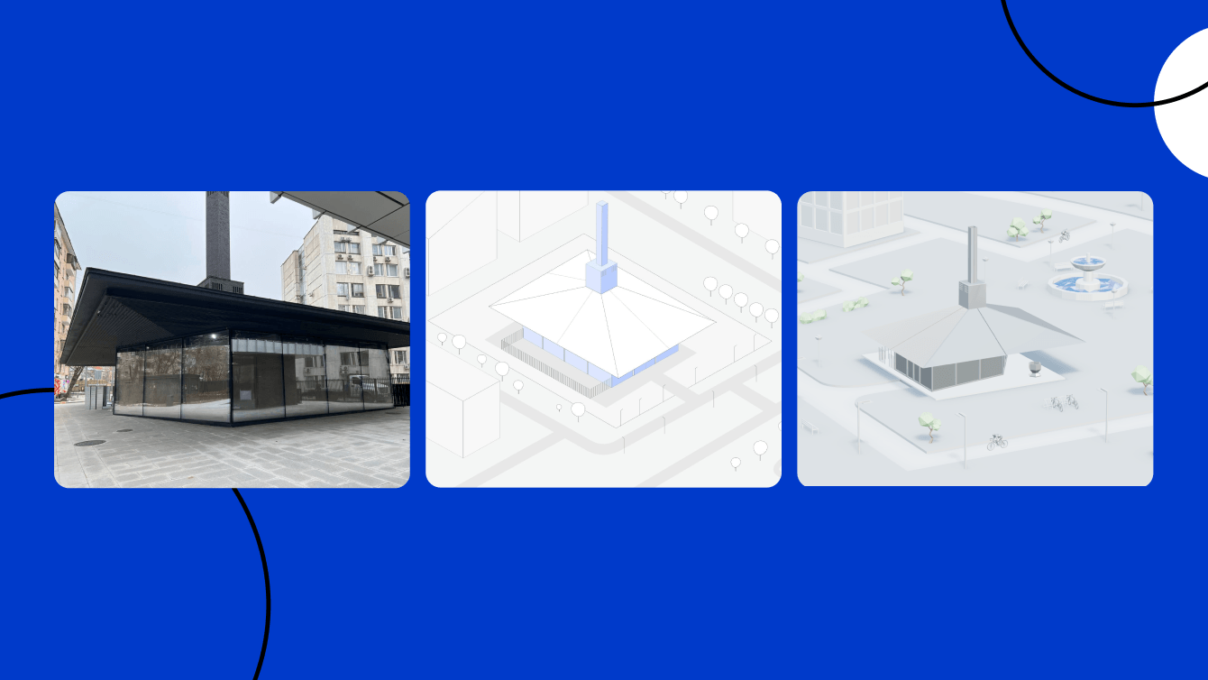 В итоге клиент сам предложил заменить его на более эффектный объект. У нас была всего пара фотографий нового здания, а в панорамах его уже нельзя было посмотреть — все закрыто забором на реконструкцию. У объекта нестандартная форма, и по паре снимков сложно было понять архитектуру.
