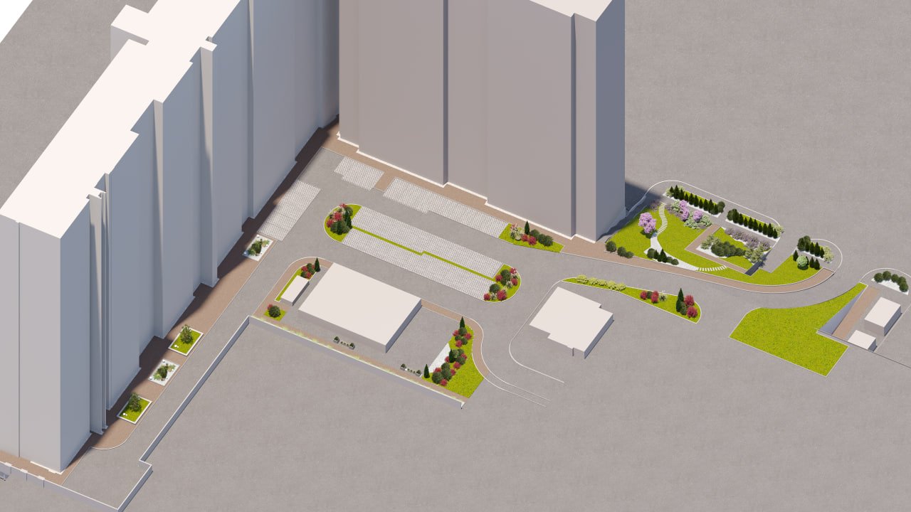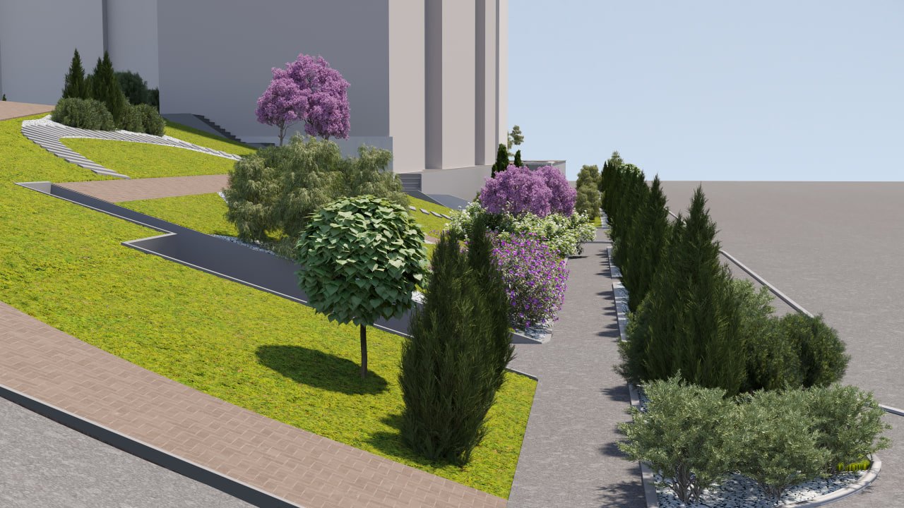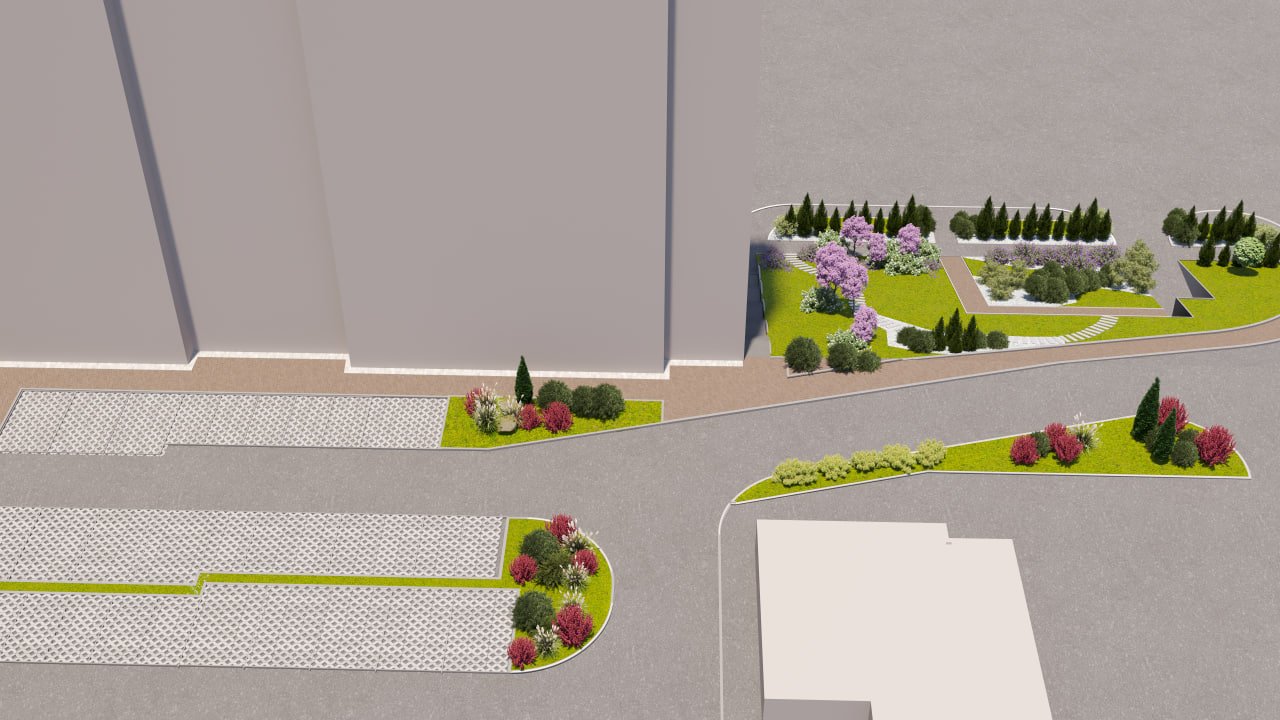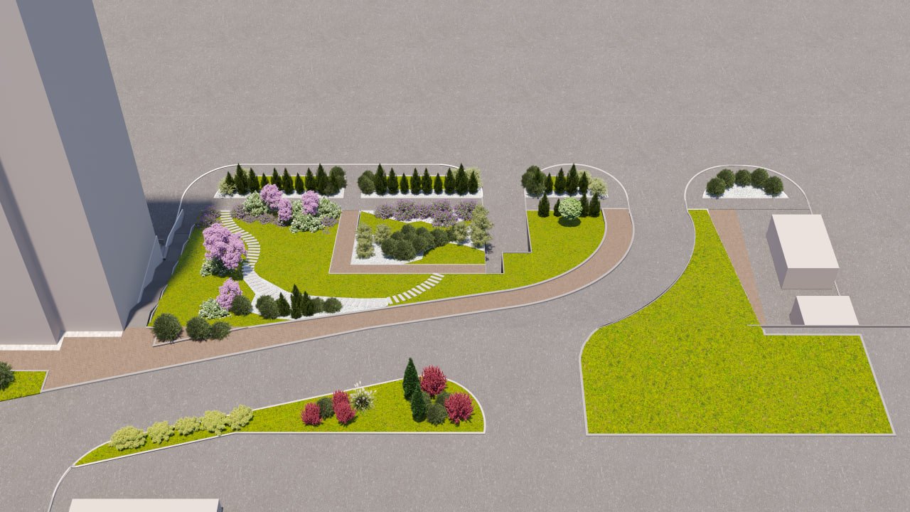 В нашей работе по визуализации благоустройства ЖК мы сосредоточились на гармоничном размещении растений, подобранных заказчиком.
