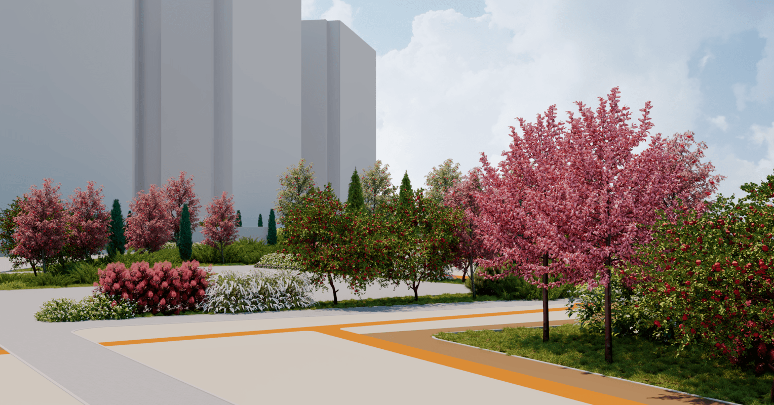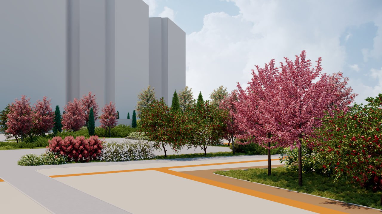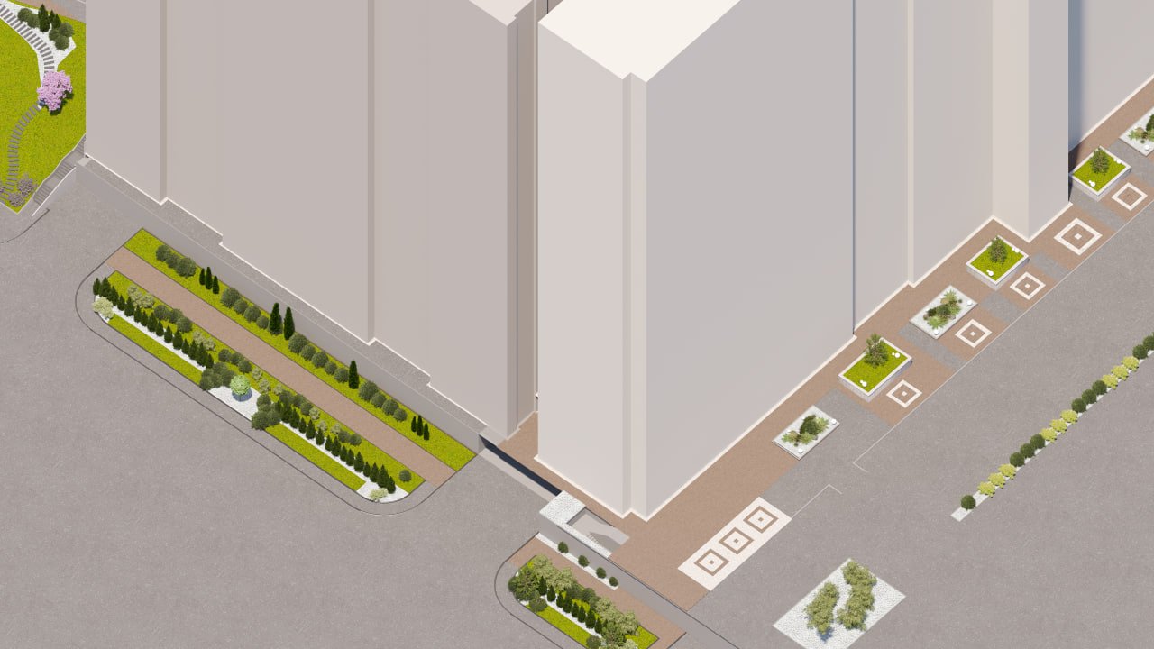 В нашей работе по визуализации благоустройства ЖК мы сосредоточились на гармоничном размещении растений, подобранных заказчиком.
