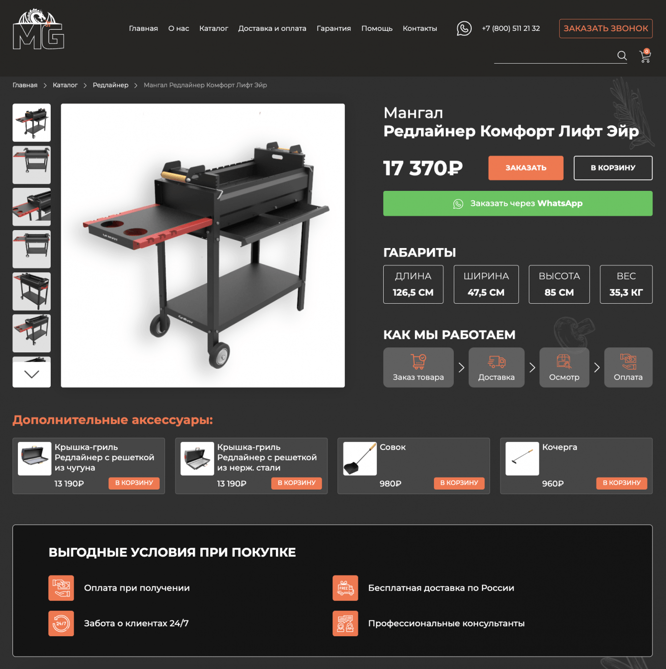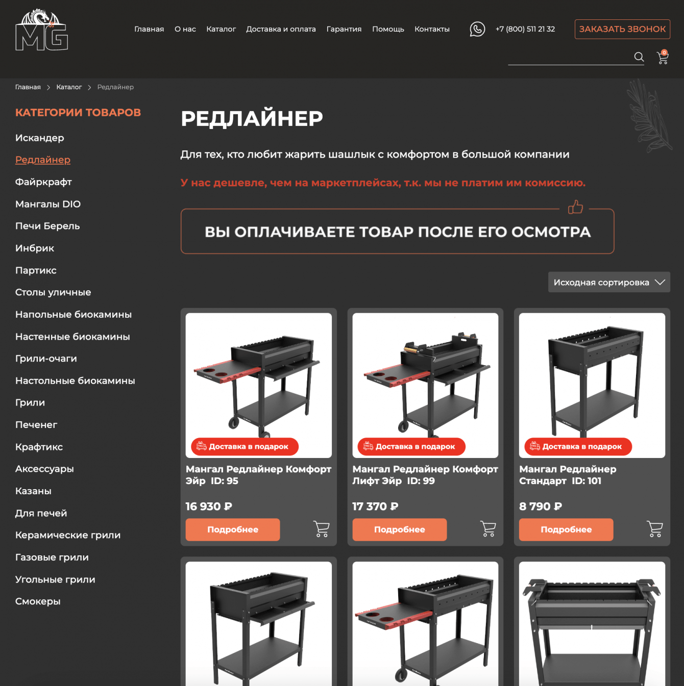 - Создана интуитивно понятная структура сайта с разделами для различных видов мангалов и грилей.