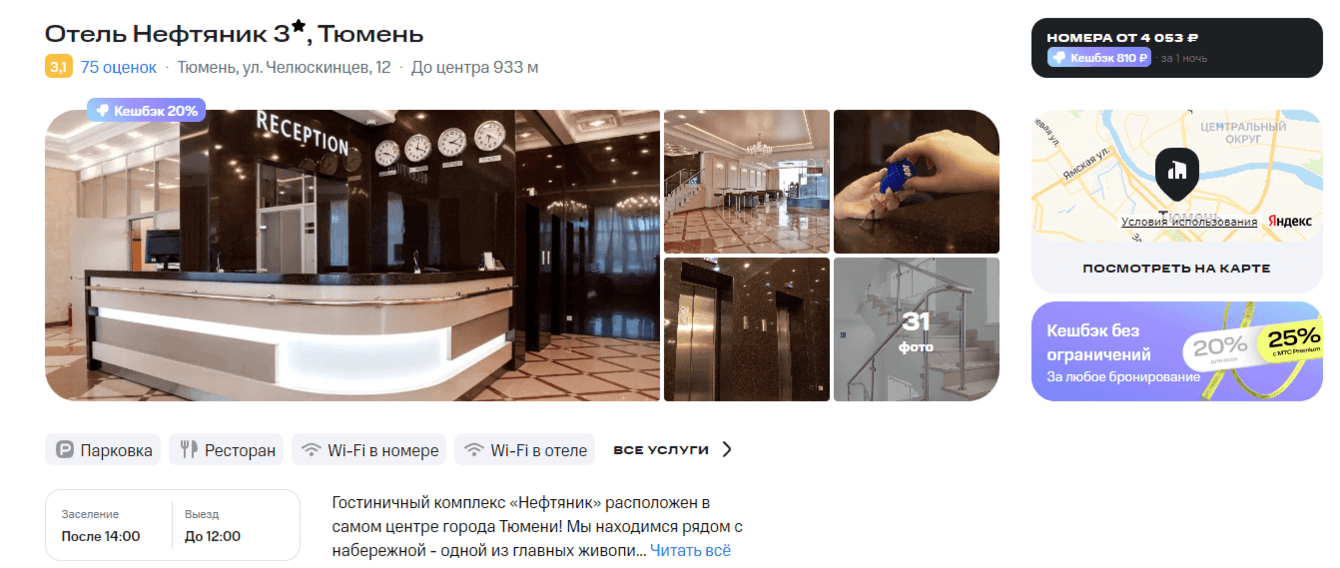 В этом кейсе нашей задачей было увеличить загрузку давно работающего отеля в Тюмени. Мы разработали и реализовали комплексную маркетинговую стратегию, которая привела к значительному увеличению числа гостей.