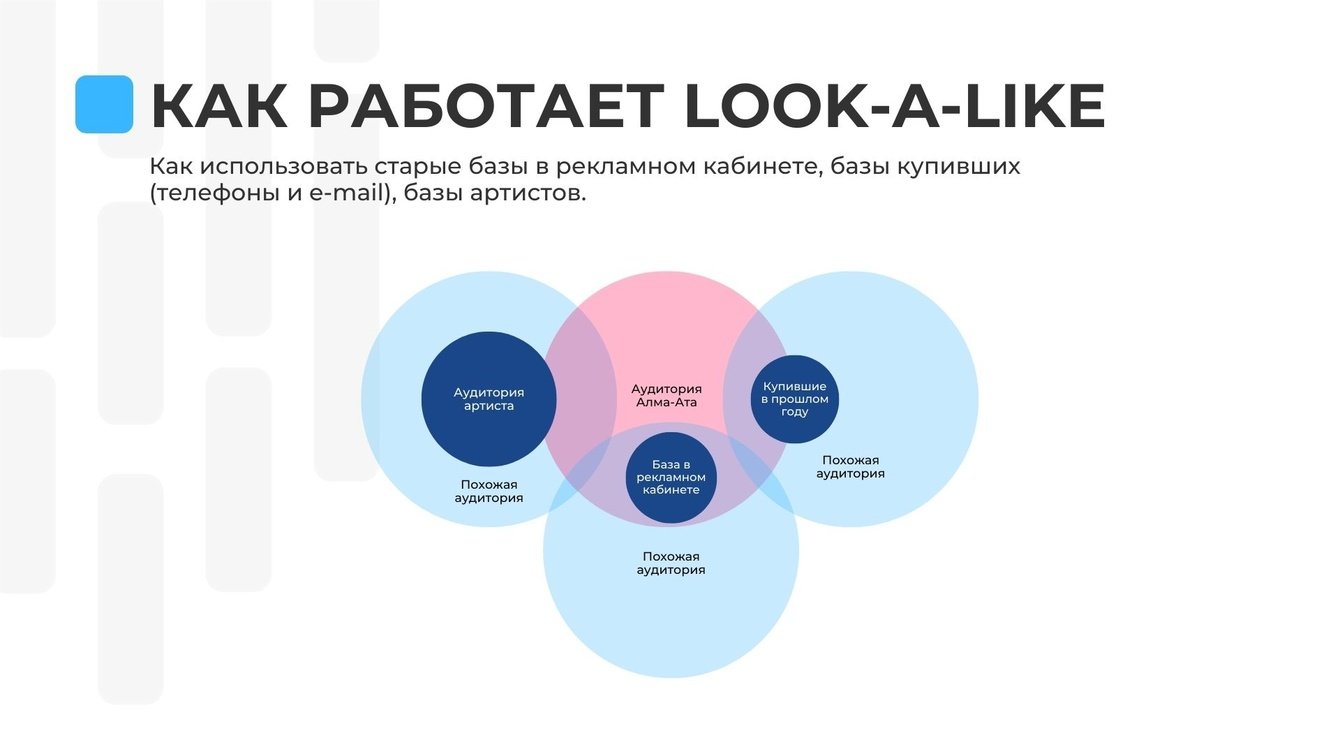 Когда пиксель собрал аудиторию или Вы залили эту аудиторию в рекламный кабинет, то можно построить похожие аудитории на основе этих баз. Похожие аудитории будут содержать пользователей, обладающих схожими параметрами и поведением по мнению системы с некоторым допущением.