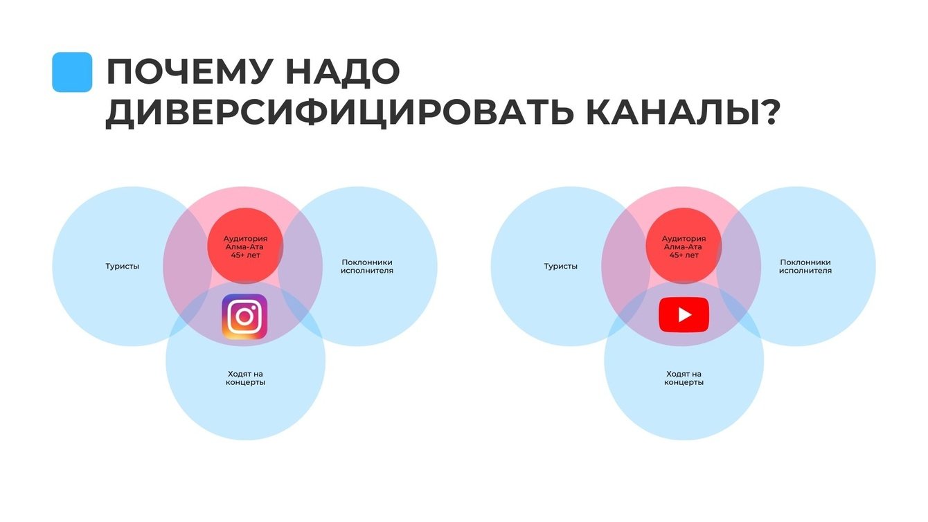 • Чем меньше охват в одной сети, тем выше должна быть диверсификация каналов