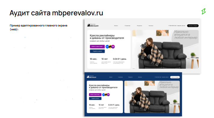 Аудит сайта с точки зрения юзабилити и дизайна;