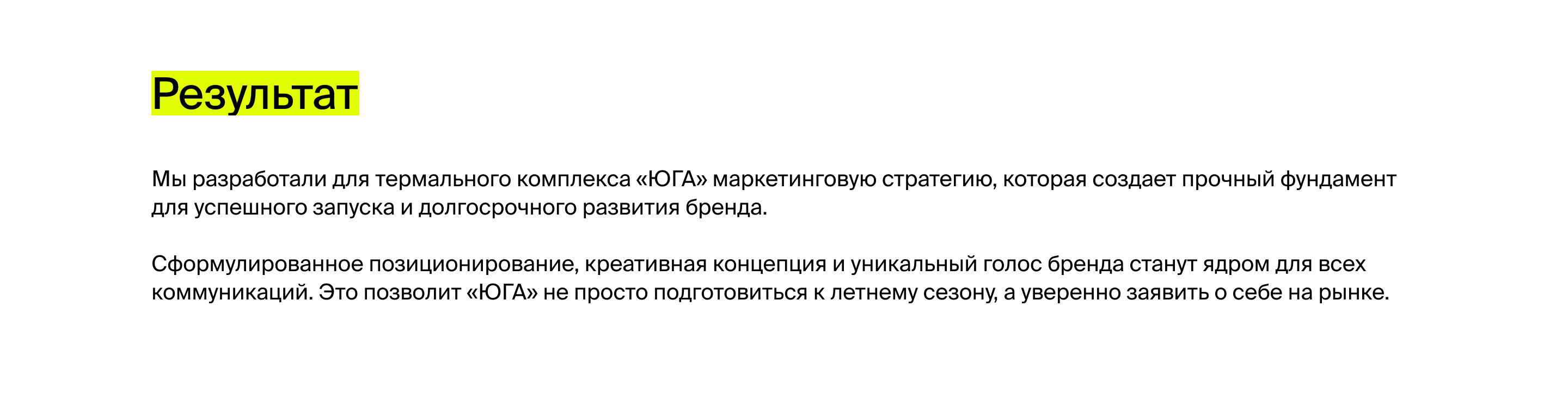 Термальный комплекс «ЮГА» только выходил на рынок. Главный запрос — создать с нуля образ бренда и подготовить комплекс к первому летнему сезону.