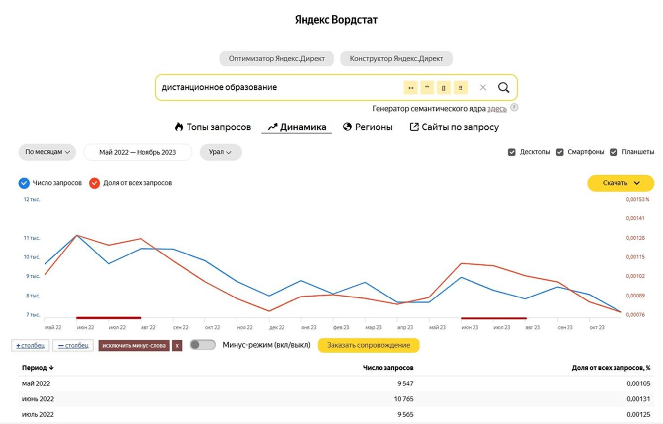 В июне клиент пришёл с запросом продвижения дистанционного и онлайн-обучения в вузе. Это те же программы очно-заочного и заочного обучения, но без посещения вуза совсем, даже в период сессий.