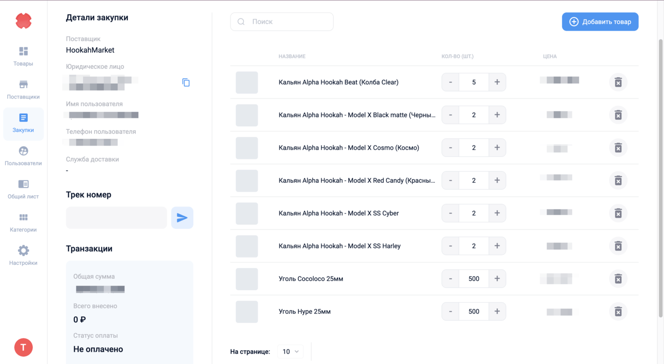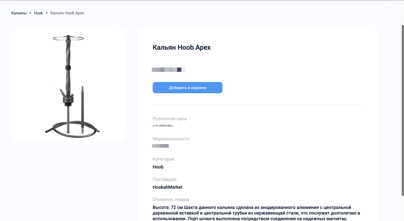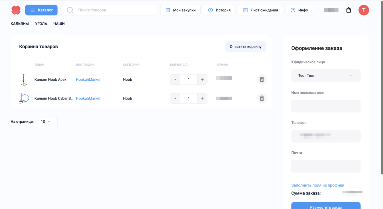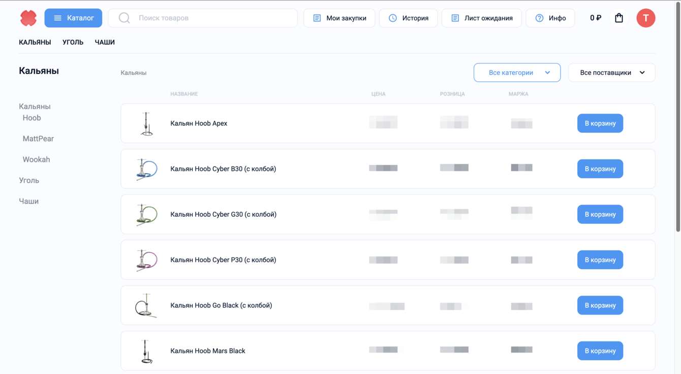Создание сайта маркетплейса для оптовых закупок кальянной продукции. Закрытый сайт для зарегистрированных пользователей: оптовых покупателей и продавцов.