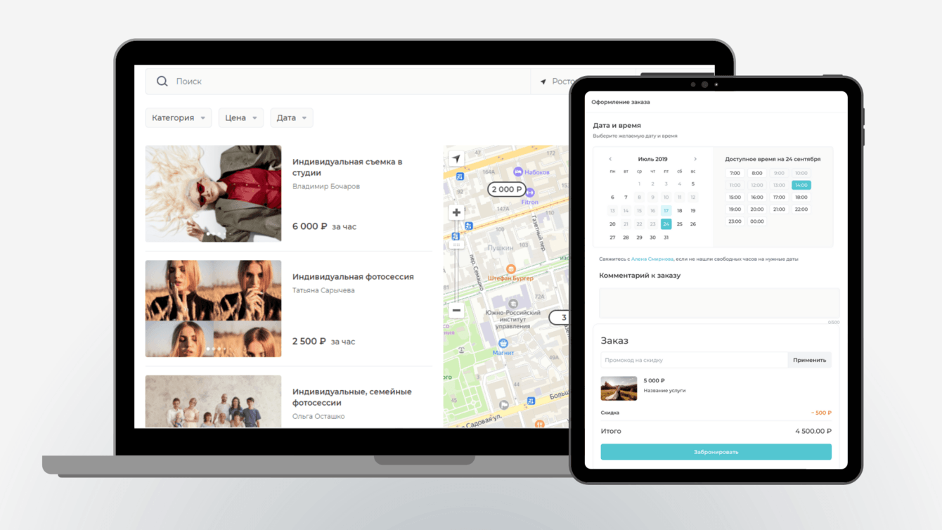 Был реализован удобный маркетплейс, благодаря которому, исполнители могут эффективно продвигать свои товары и услуги, а заказчики в считанные минуты забронировать эти услуги для любого мероприятия. Поисковая выдача строится за счет уникальной системы рейтингов, которая максимально защищена от накрутки.