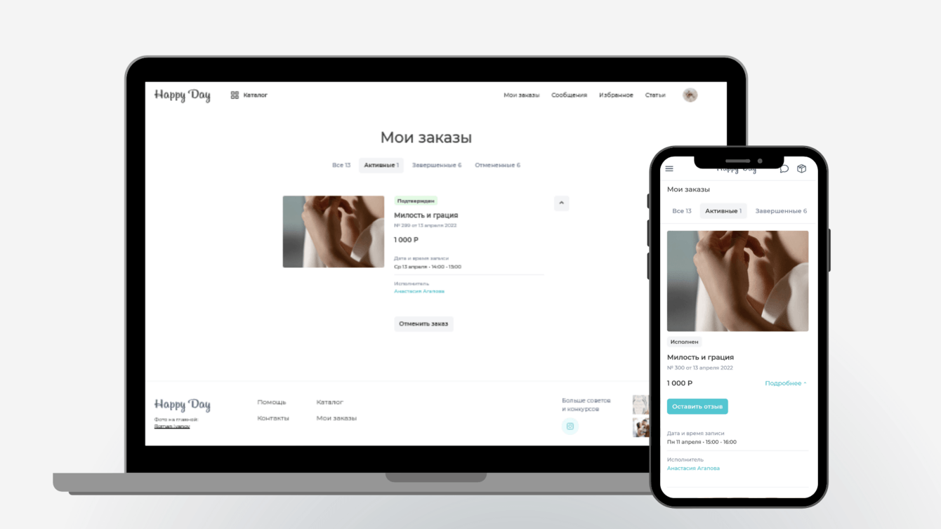 После бронирования товаров или услуг, вся информация о них, включая статусы, отображается в личном кабинете клиента. Есть возможность написать комментарий к заказу и оперативно решить все вопросы до оплаты. После получения услуги клиент может оставить отзыв, который отобразится на публичной странице исполнителя.
